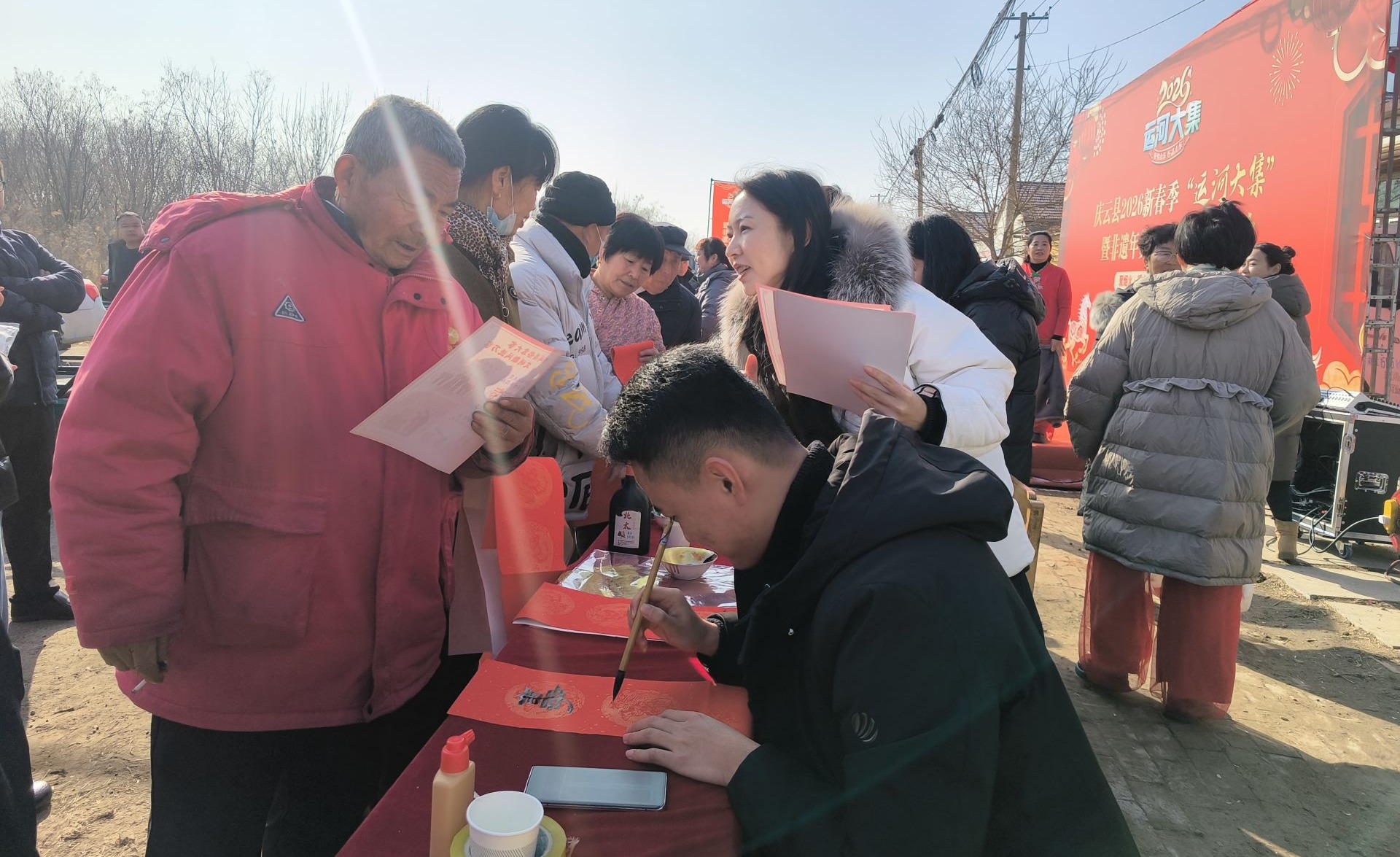活动现场还设置了“写春联·送福字”互动区,书法爱好者们挥毫泼墨,将“护苗”标语融入新春祝福。“既拿到了喜庆的春联,又学到了护苗知识,这个年过得更有意义!” 接过春联的村民王阿姨笑着说。