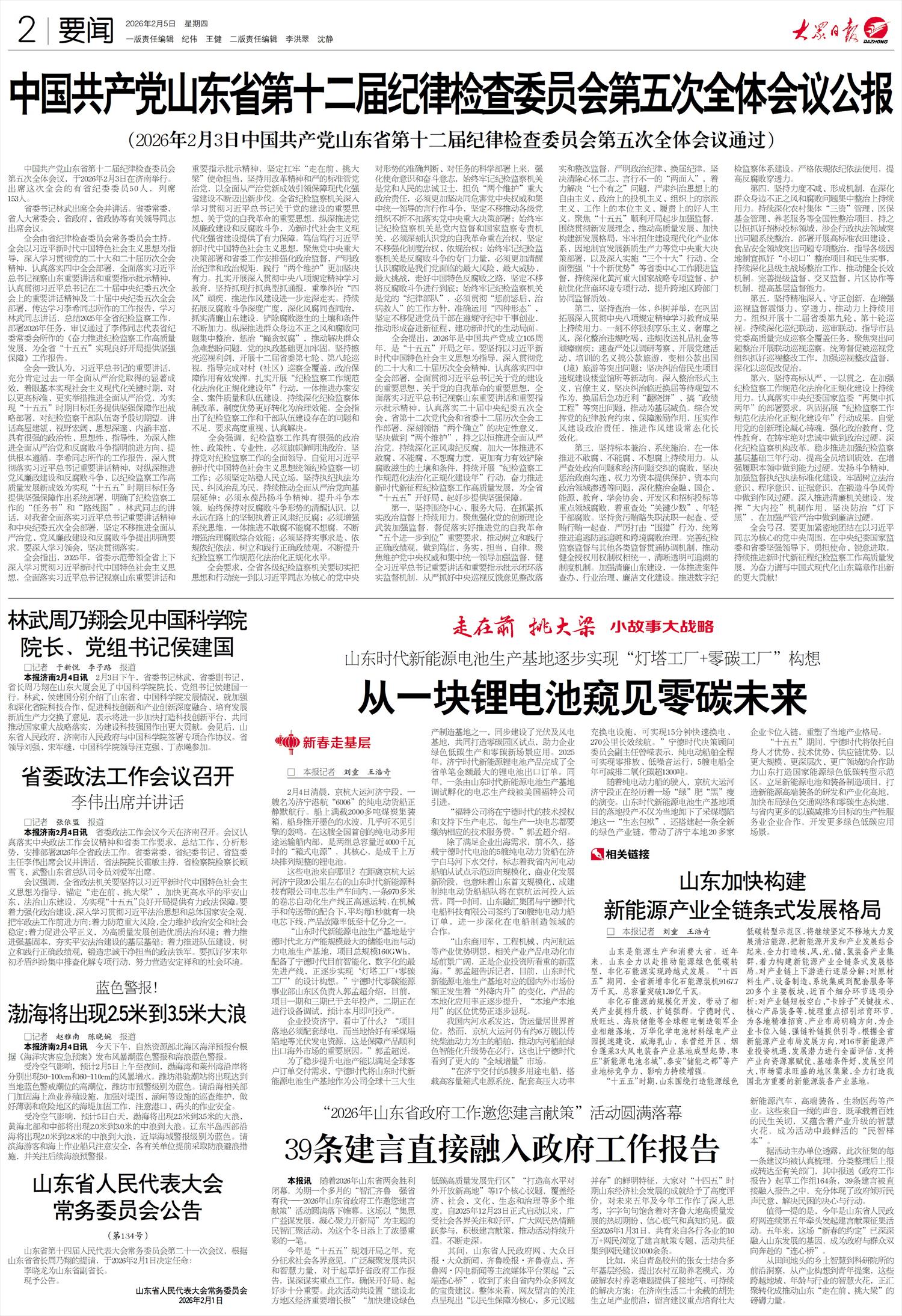 “十五五”期间,宁德时代将依托自身人才优势、技术优势、供应链优势,以更大规模、更深层次、更广领域的合作助力山东打造国家能源绿色低碳转型示范区。立足新能源电池和装备制造项目,打造新能源高端装备的研发和产业化高地,加快布局绿色交通网络和零碳生态构建,与省内更多的以碳减排为目标的生产性服务业企业合作,开发更多绿色低碳应用场景。