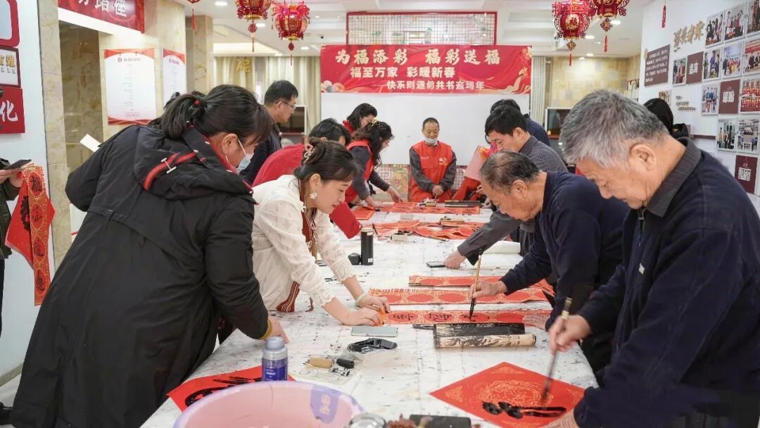 活动现场,多位书法家执笔送福。居民口述心愿,书法家凝神运笔,在行云流水间将吉祥祝福落于纸上。“福如东海长流水……”居民李阿姨话音刚落,书法家已一气呵成,引来周围群众连连称赞、拍照留念。“笔下写的是字,心中送的是情意。”书法家齐延庆一边书写一边感慨,“每一笔都寄托着大家对美好生活的向往,我们用心书写,正是对这份年味与祝福最深情的回应。”
