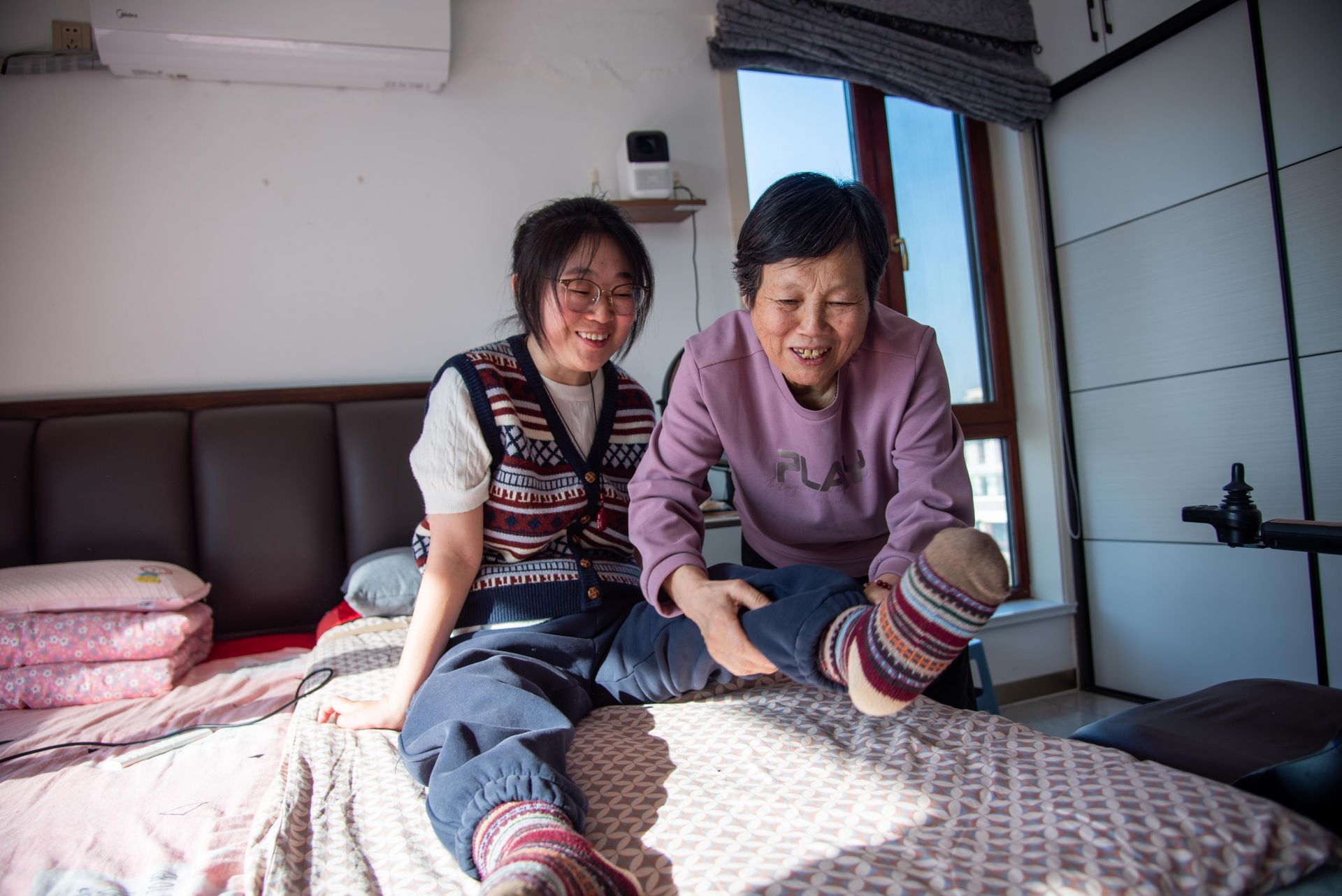 她身高只有1.54米,瘦瘦小小,却要每天抱我上下床、上下轮椅。每次“搬运”都得咬牙使出全身力气,她的腰伤就是这样落下的。为了给我挂一个专家号,她能在医院冰冷的长椅上坐一整夜,还从零开始跟着医护人员学护理手法,对着视频钻研按摩技巧,查资料研究各种营养食谱,从前连厨房都很少进的人,硬生生练出了一手好厨艺。