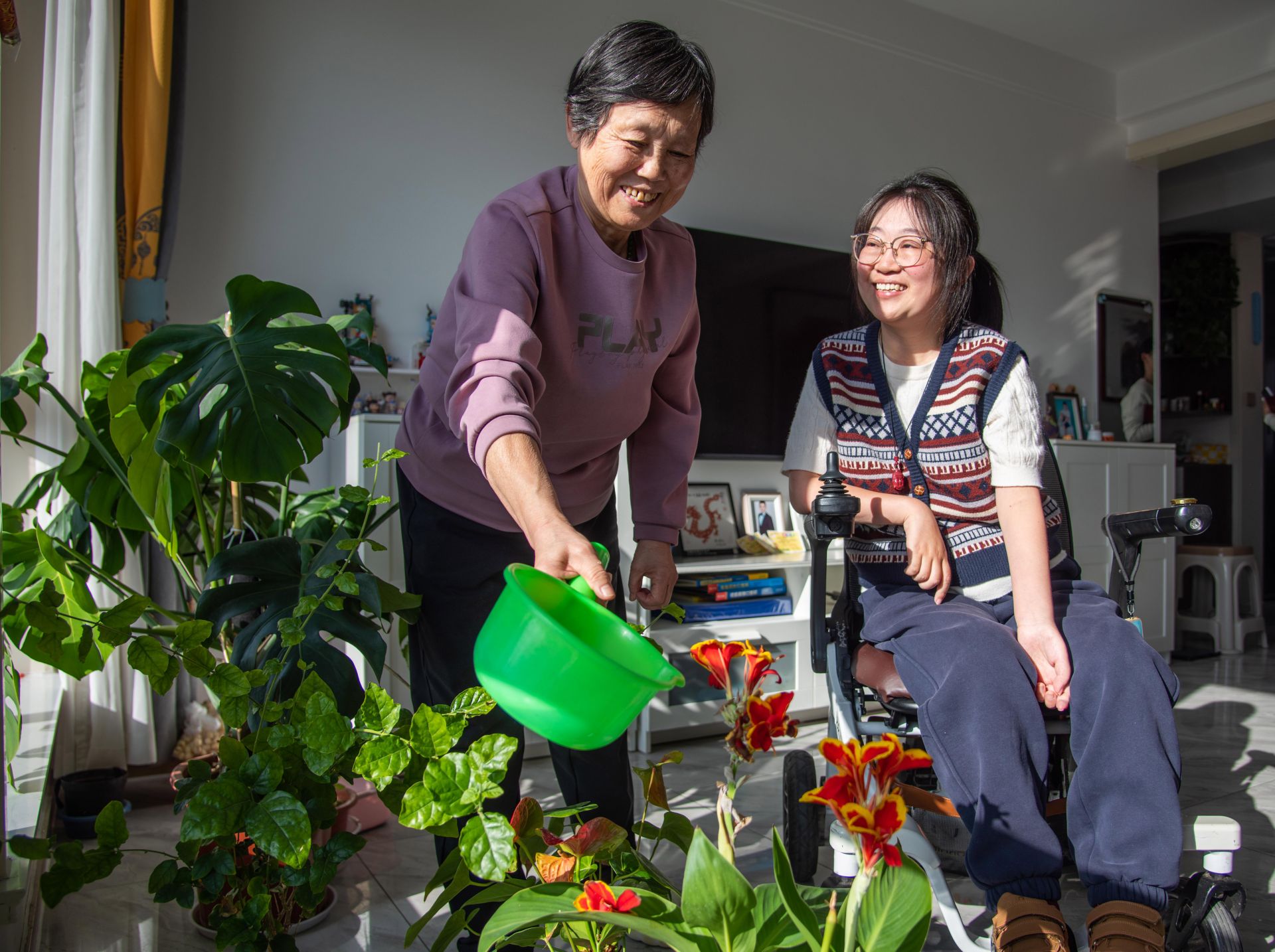 我们是母女,也成了最亲密的朋友和搭档,一起去公园遛弯儿,一起逛市场购物。刚刚坐上轮椅的时候,我怕别人异样的目光,不敢出门,是母亲的陪伴为我增添了勇气。看着她头上新增的白发和时常疼痛的腰,我心怀愧疚,她却不停宽慰我:“是你让我的老年生活充实又有意义。”前些天她翻看老照片,有一张是她抱着婴儿时的我,突然笑了:“哪怕过了30多年,我的小秋还是整天满屋子找妈妈的小娃娃。”听后我泪如雨下。