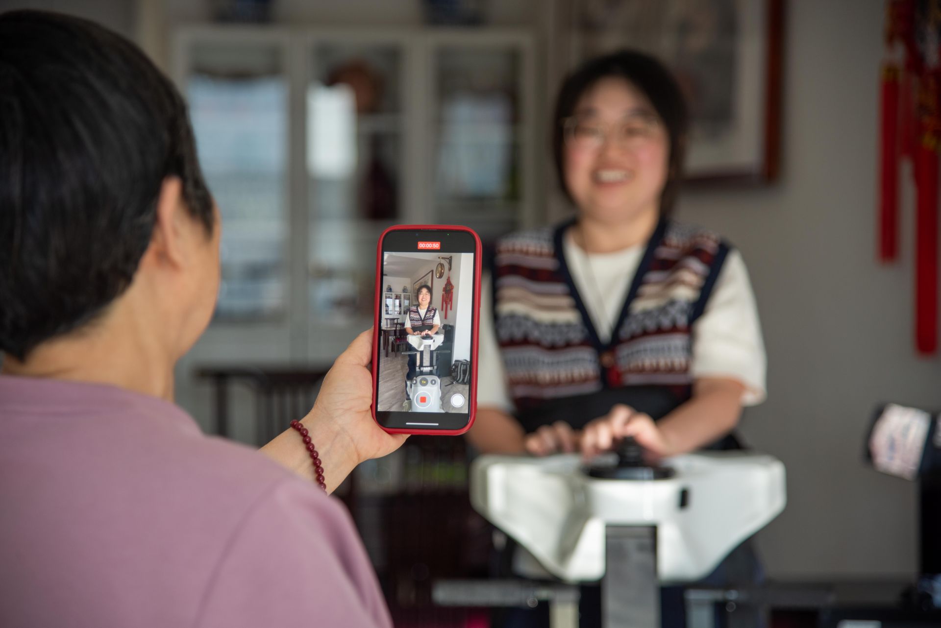 这个想法得到了全家支持。王猛为我准备了一部摄像功能好的手机,母亲则学起了运镜、找角度,跃跃欲试地当起了“技术总监”。拍摄,比任何康复训练都难。我的手没力气,只能用腕带把手机挂在手掌上,靠手臂残余的力量艰难举起,再用嘴唇去轻触屏幕上的拍摄键。一个几秒钟的镜头,我和妈妈常常要拍十几遍。在无数次“重来”中,笑作一团,也磨出了默契。