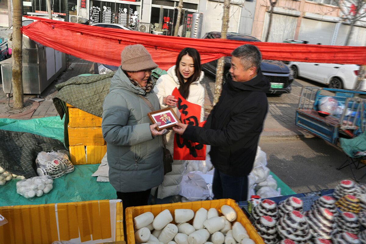 “来,大姐,拿着您的枣花糕,笑一笑!”在镇上经营枣花糕铺子的冯小红,刚忙完一阵生意,就被摄影志愿者热情地邀请到镜头前。案板上,刚出锅的枣花糕色泽鲜亮、枣香四溢,冯小红小心翼翼捧着亲手制作的特色糕点,脸上绽放出朴实又灿烂的笑容。随着“咔嚓”一声,这份裹挟着传统年味与手工匠心的幸福瞬间被永久留存。短短十几分钟后,装裱精致的照片便送到了冯小红手中,她捧着照片反复端详,眼角眉梢都藏不住满心喜悦。“做枣花糕十几年了,天天忙着揉面、蒸制,从没好好拍过一张像样的照片,更别说这么精致的装裱照了!”冯小红激动地说,“枣花糕象征着团圆吉祥,这张照片把我的手艺和过年的喜庆都拍进去了,比收到红包还开心!我要把它放在店里最显眼的地方,让来买糕的顾客都能感受到这份幸福,也给我的小店添点新春喜气!”