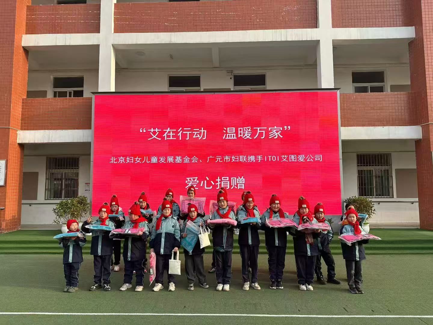 1月28日,寒风料峭,四川省旺苍县特殊教育学校的操场上却洋溢着浓浓的温情,一场简单而庄重的暖冬捐赠正在举行。北京妇女儿童发展基金会携手四川省广元市妇女联合会、爱心企业艾图爱(北京)体育用品有限公司,将182套崭新的过冬衣物、围巾、手工益智用品等送到了孩子们手中,用爱心温暖了这个特殊的校园。