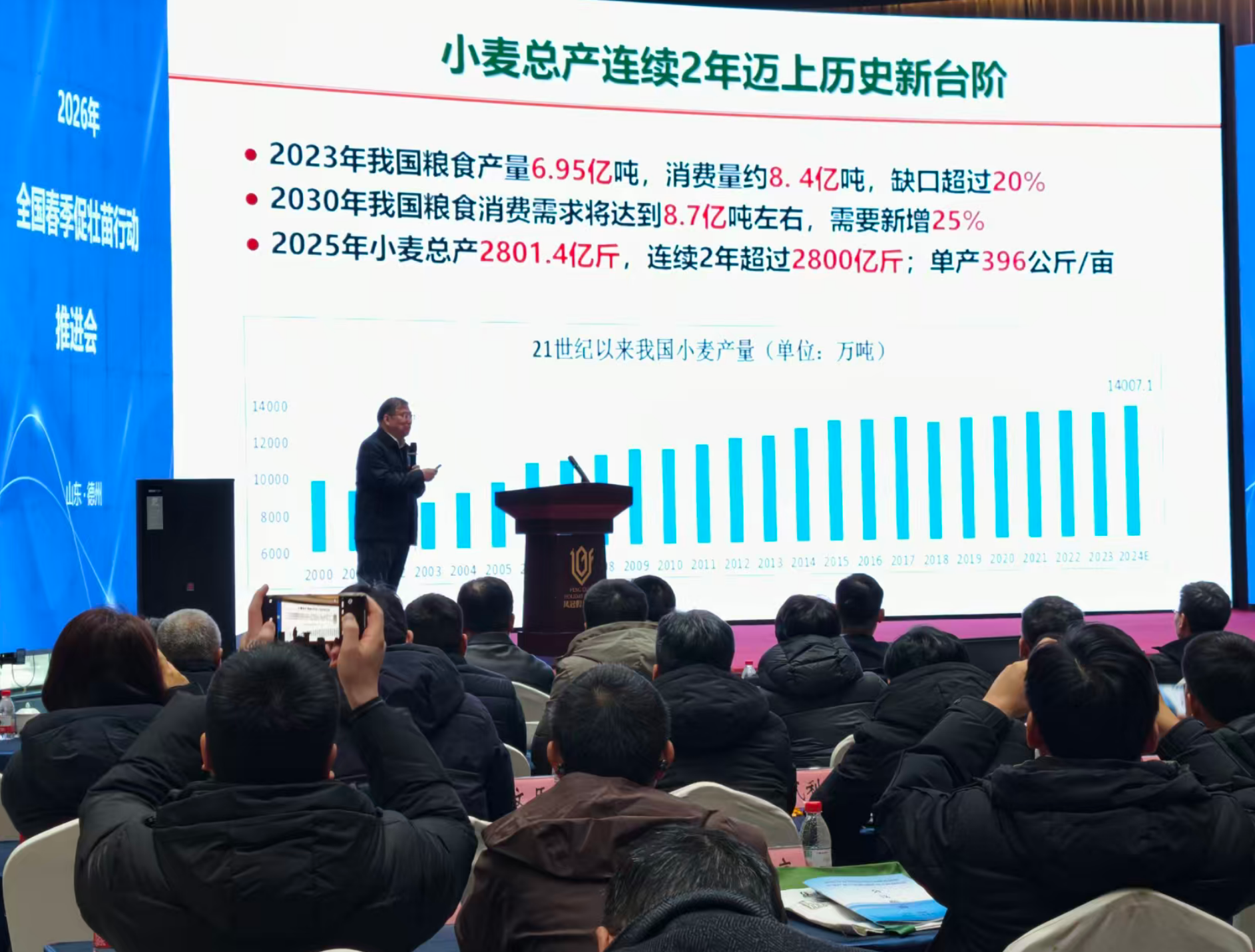 此次会议既是全国小麦春季田间管理的关键部署会,也是科技赋能粮食产能提升的现场推进会。与会专家一致认为,应进一步强化科技支撑、集成推广绿色高产技术,抓实抓细春季麦田管理,为夏粮丰收奠定坚实基础。会议强调,要持续发挥专家团队和基层农技体系作用,推动“吨半粮”模式在更大范围复制推广,为实现粮食高产稳产、加快建设农业强国贡献更大力量。