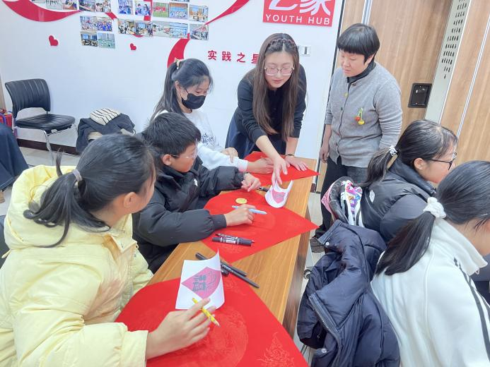 与义剪活动同步开展的,还有一场充满童趣的写福字活动。孩子们在志愿者的指导下,在红纸上认真书写。不一会儿,一张张福字就铺满了桌面,孩子们看着自己的成果,脸上洋溢着满满的成就感,并小心翼翼地把这份亲手制作的新年祝福开开心心地带回了家。