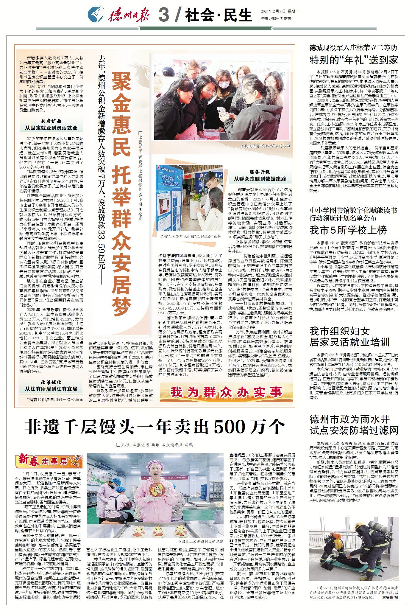 新增缴存人数突破7万人,人数为历年来最高;“服务高质量就业”“助力征收安置”等4项经验两次获住建部全国推广……在过去的2025年,德州市住房公积金管理中心交出了一份亮眼的成绩单。