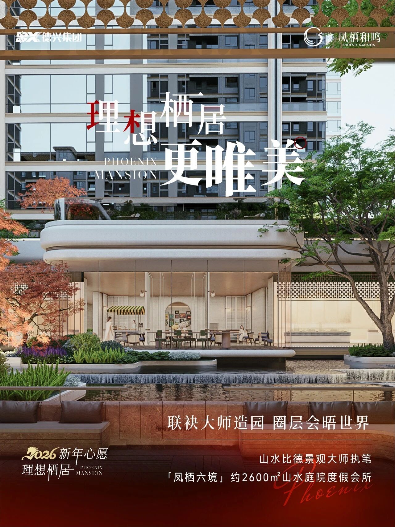 景观上,山水比德大师打造“凤栖六境”,配2600平方米山水庭院会所,承载家庭休闲意趣;户型采用3.1至3.3米层高、IMAX级面宽,满足返乡家庭品质居住需求。