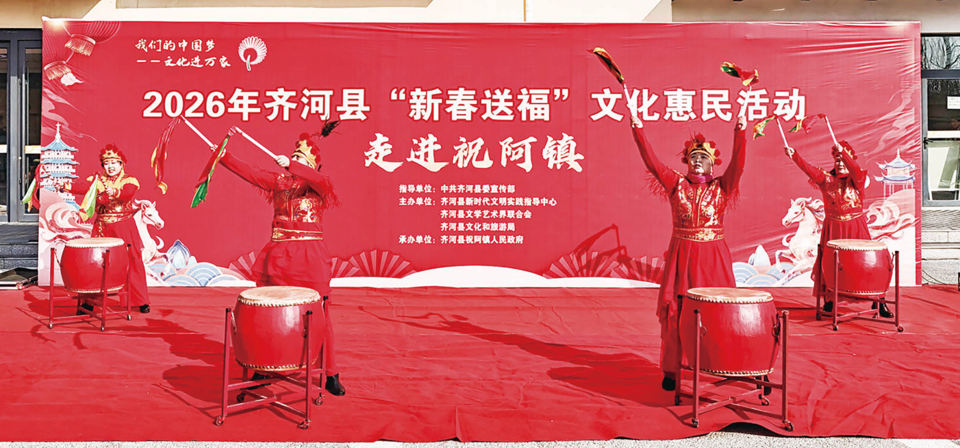 年味儿是什么?是街巷间的欢声笑语,是邻里间的温情相伴,更是文化浸润下的幸福滋味。新春佳节来临之际,齐河县以文化为桥、以惠民为旨,组织开展“新春送福”文化惠民系列活动——依托新时代文明实践阵地,齐河组织新时代文明实践文化巡演团走遍全县15个乡镇(街道),将文艺汇演、墨香送福、健康义诊、志愿服务等多元服务送到群众家门口,以“集中展演+分散活动”的模式,让接地气、有温度的文化服务走进乡村,在营造浓浓年味儿的同时,把新春的温暖与欢乐送到百姓心坎上。