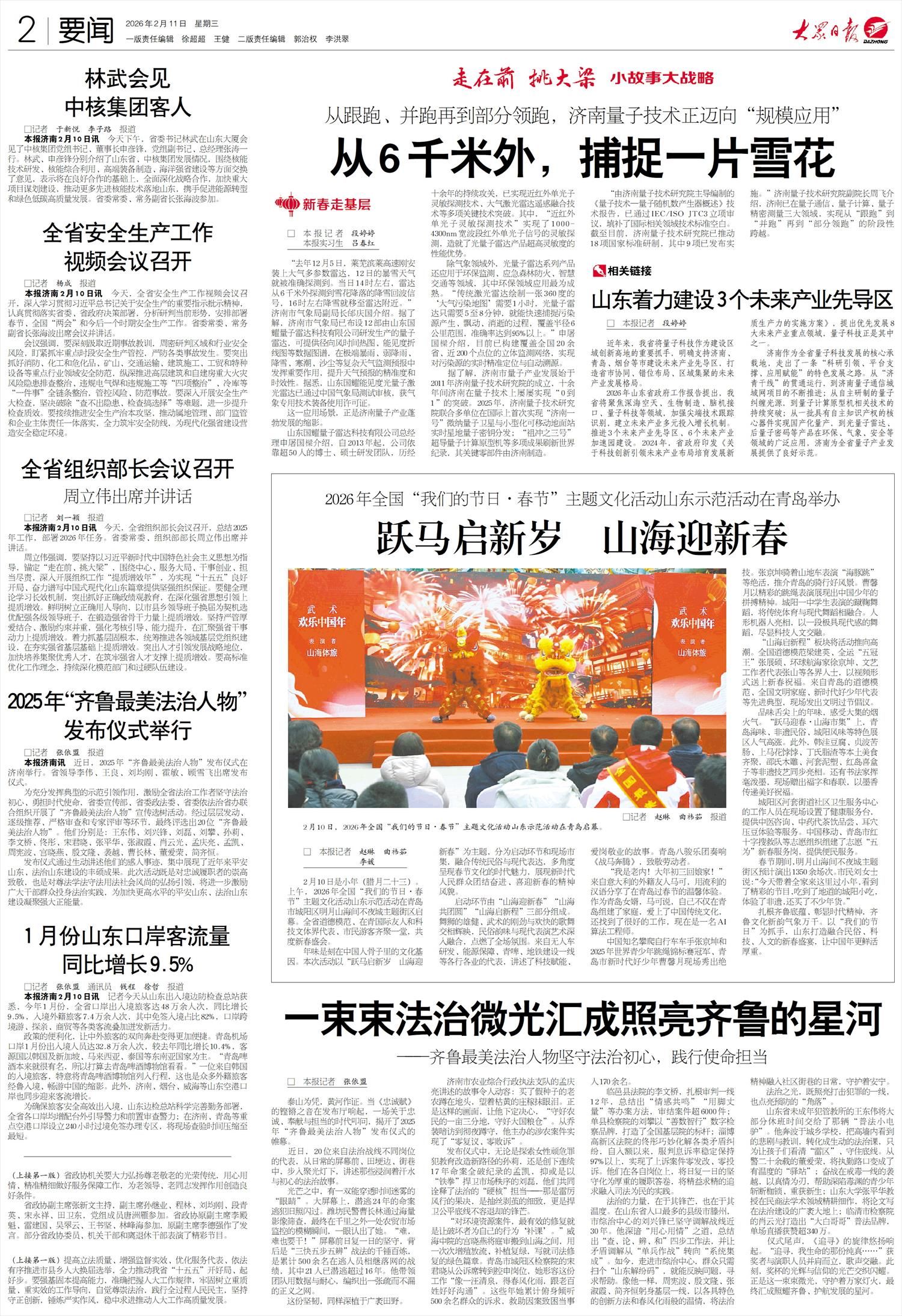 “由济南量子技术研究院主导编制的《量子技术—量子随机数产生器概述》技术报告,已通过IEC/ISO JTC3立项审议,填补了国际相关领域技术标准空白。截至目前,济南量子技术研究院已推动18项国家标准研制,其中9项已发布实施。”济南量子技术研究院副院长周飞介绍,济南已在量子通信、量子计算、量子精密测量三大领域,实现从“跟跑”到“并跑”再到“部分领跑”的阶段性跨越。