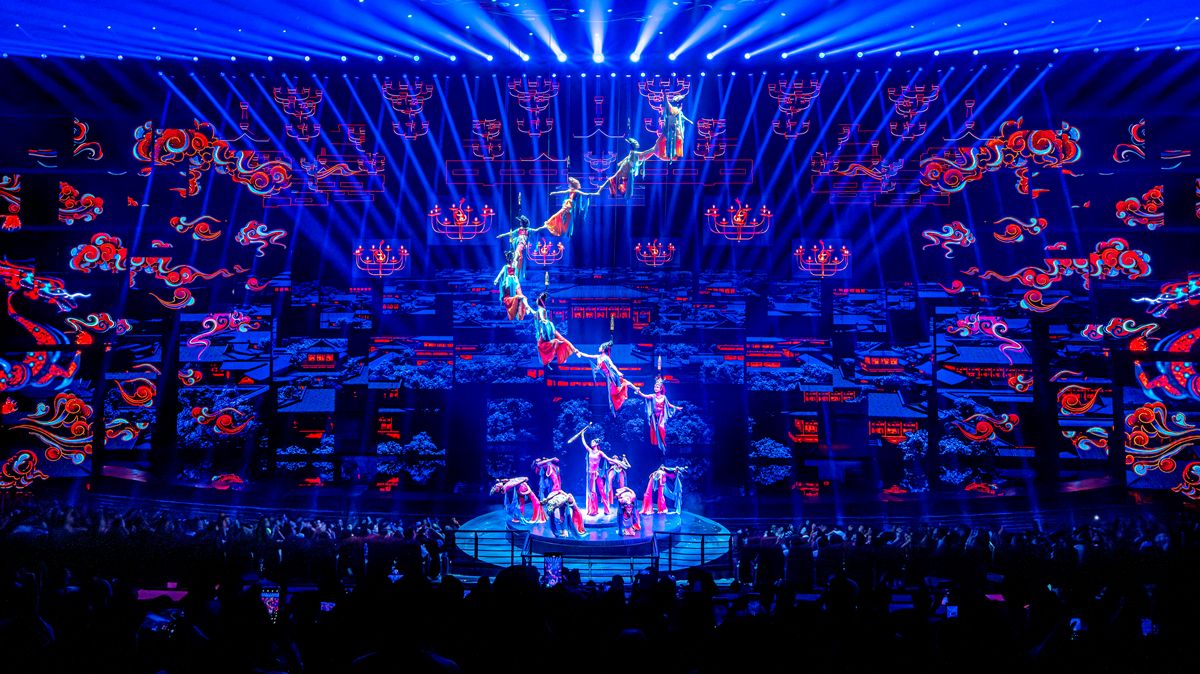 上千套可上天入地的舞台机械,搭配150组可自由升降、拼接的矩阵屏,能营造出变幻莫测的演艺空间。