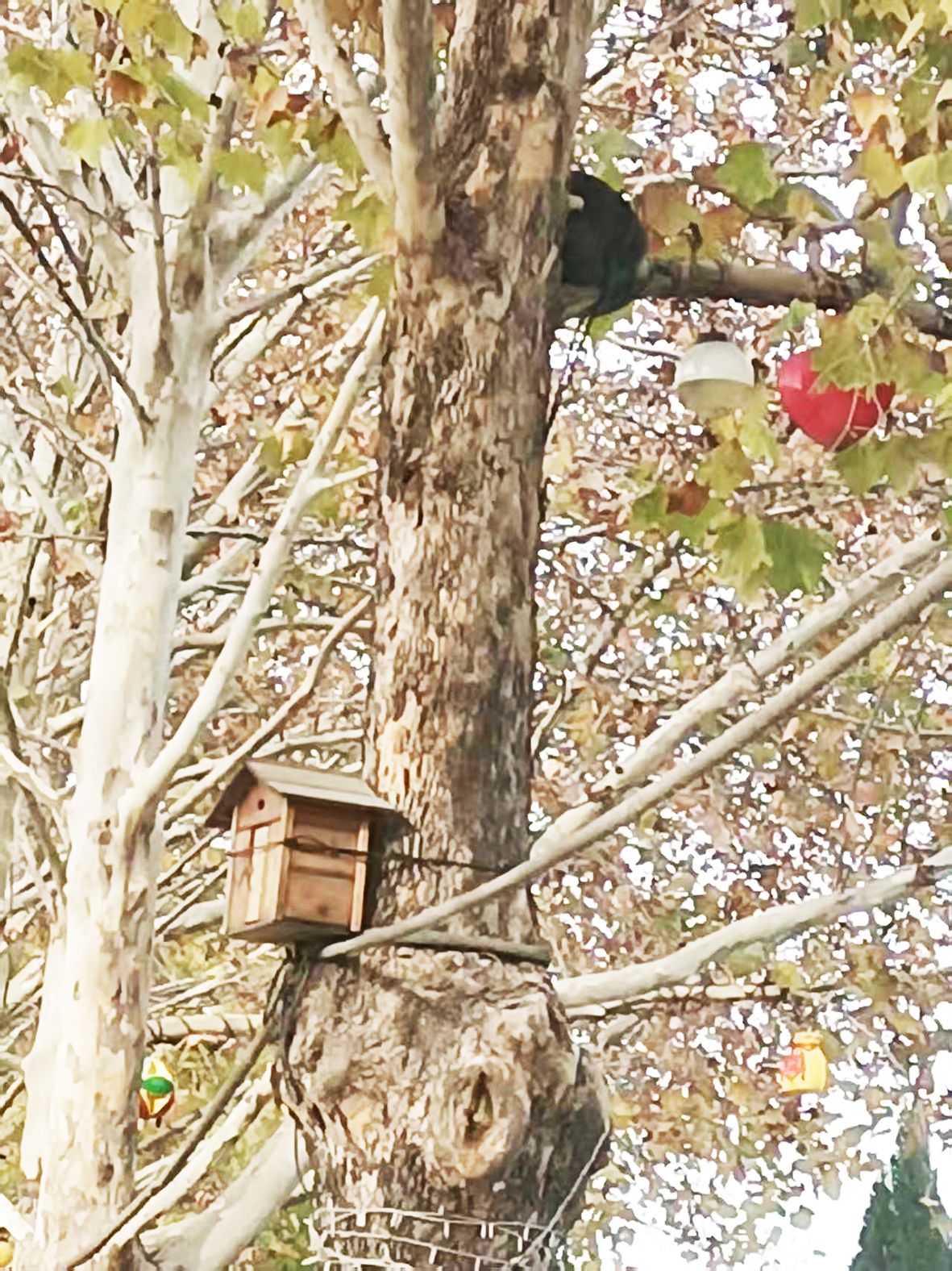 每根灯杆都挂着一团蓬松的巢窝