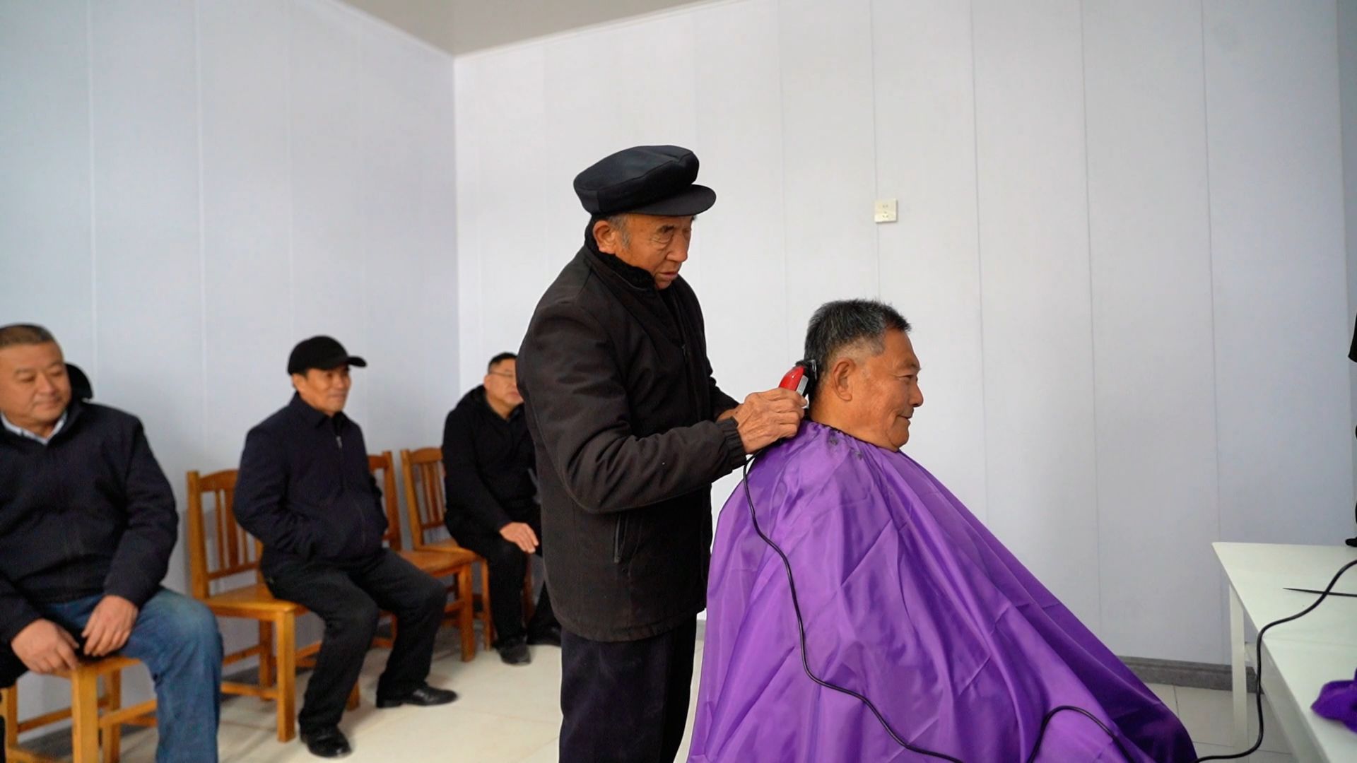 饭点儿过了,老人们心满意足地散去。杨永清也送完餐回了村委会大院。这时,付红明和赵志忠两位老人溜达进来,摸摸头发:“快过年了,想理个利索头。”村干部付德荣笑着应下,领他们到食堂隔壁的理发室。推子嗡嗡响过,两位老人顶着清爽的寸头走出来,直念叨:“咱村的干部,真是啥都会!”