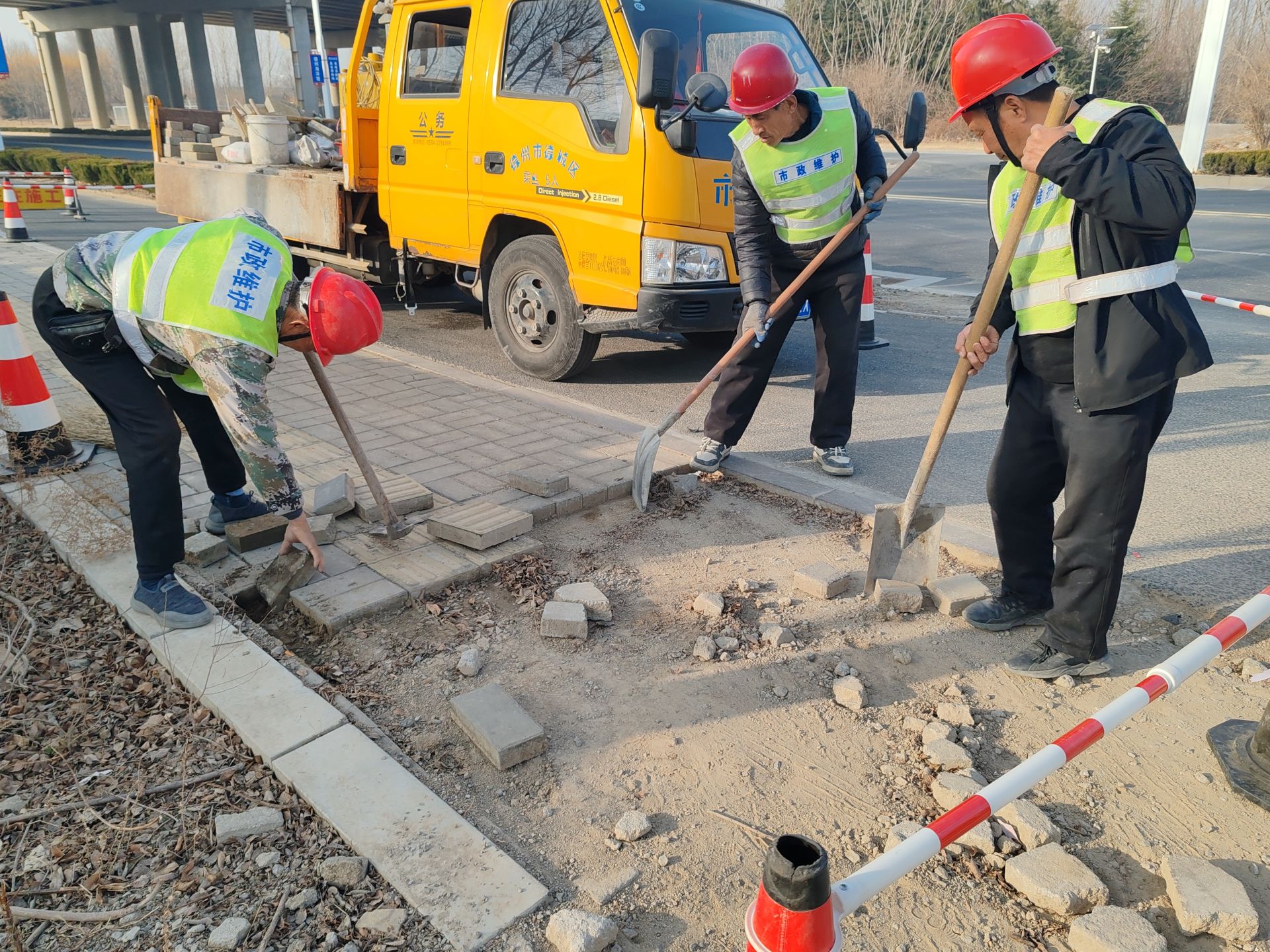 “地毯式”排查,铺就平安“畅行路”。针对春节期间人流车流激增的特点,中心抢抓天气晴好的窗口期,对主次干道开展拉网式“体检”。重点聚焦路面坑槽、网裂、人行道松动等“病害”,实施“错峰施工、即查即补”。开展窨井盖专项整治,严防“跳车、异响”扰民。截至目前,累计修复沥青路面500余平方米,整修人行道130余处,维修井盖20余处,确保游子归乡路平坦通畅。