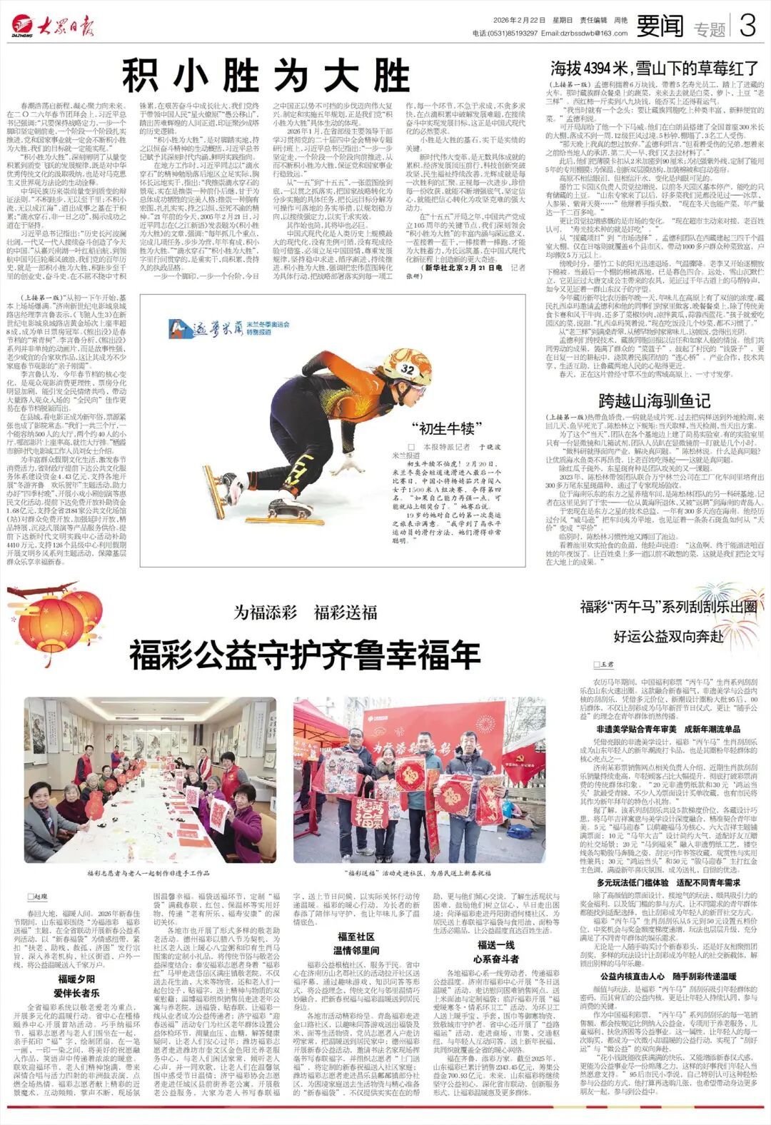 春回大地,福暖人间。2026年新春佳节期间,山东福彩围绕“为福添彩 福彩送福”主题,在全省联动开展新春公益系列活动,以“新春福袋”为情感纽带,紧扣“扶老、助残、救孤、济困”发行宗旨,深入养老机构、社区街道、户外一线,将公益温暖送入千家万户。