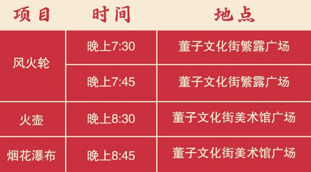 5.为了您的安全,观看火壶、风火轮、烟花瀑布时,请保持安全距离。