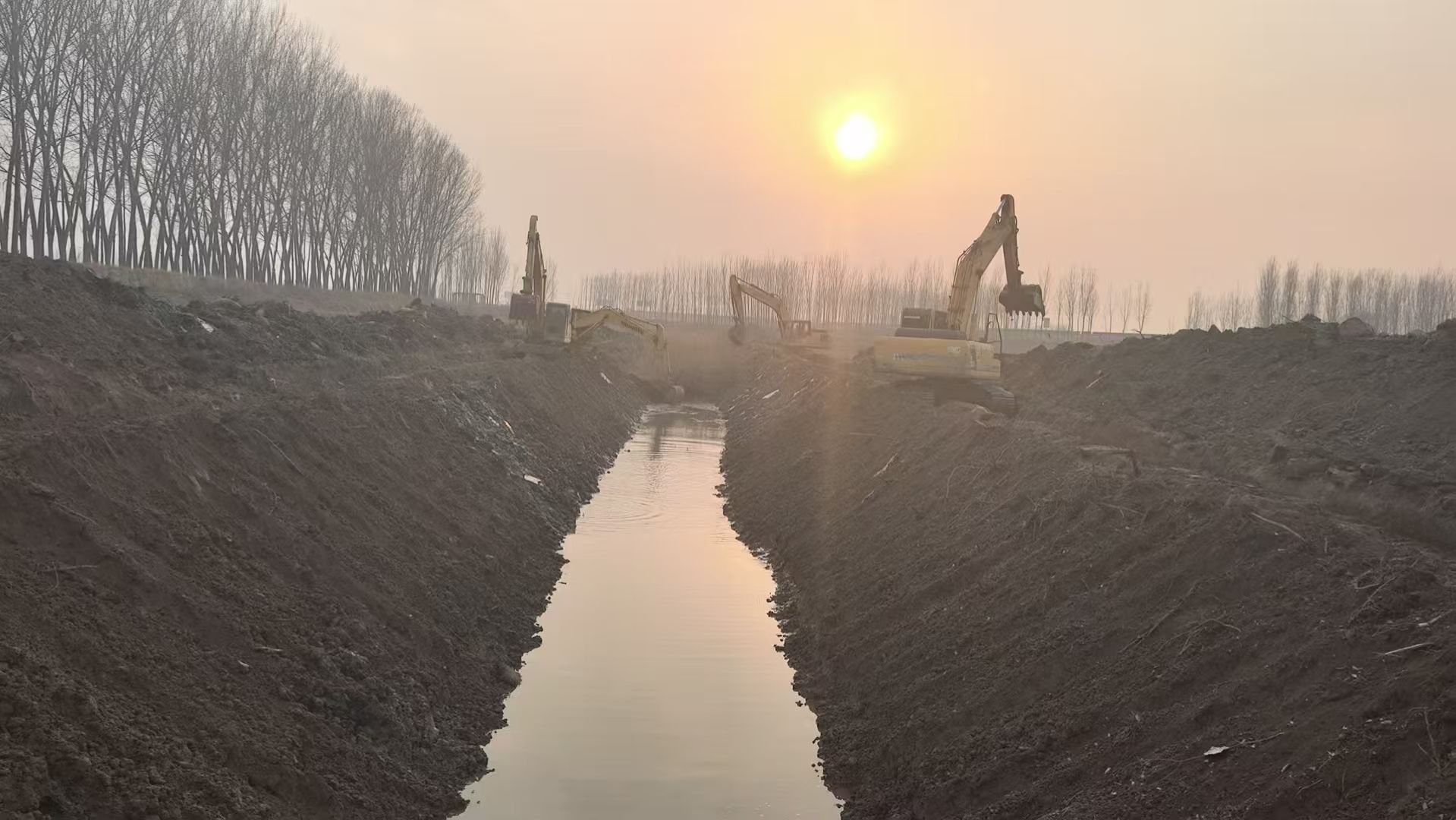 2月5日,农历腊月十八,老孙早起去地里看麦子,走到沟边,他低头看见沟底有一层薄冰,冰下面是清亮的水,正贴着清理后的沟底慢慢淌。“通水了!”他顺着沟沿往上游走,越走冰越薄、水面越宽。走到村西,这里的冰已经化了,他蹲下身,把手伸进水里,还是凉丝丝的。远处,不知谁家的水泵响了,第二台、第三台,水从沟边一路漫向田里,青绿的麦苗喝上了返青水。