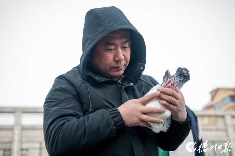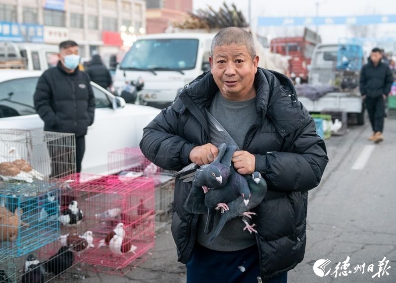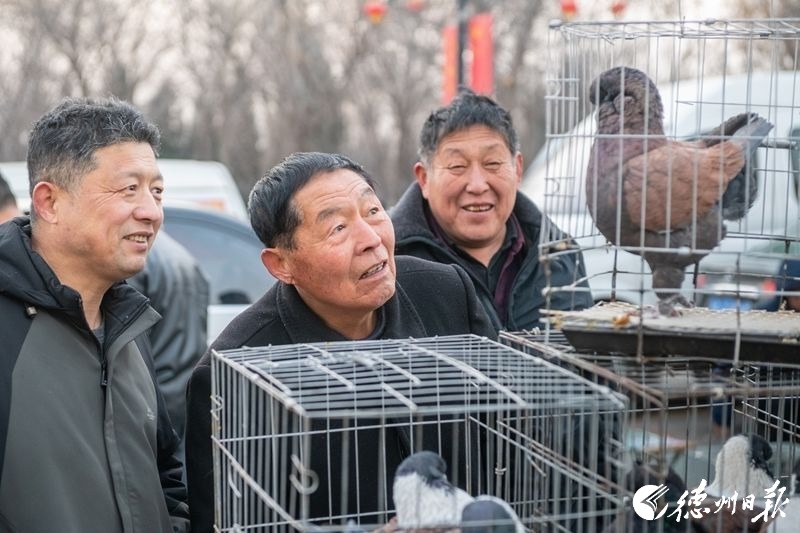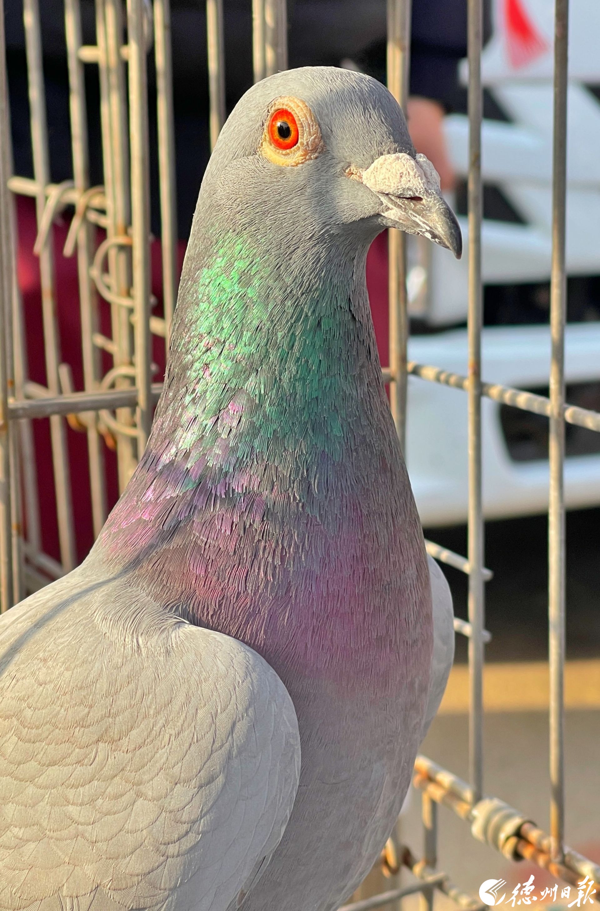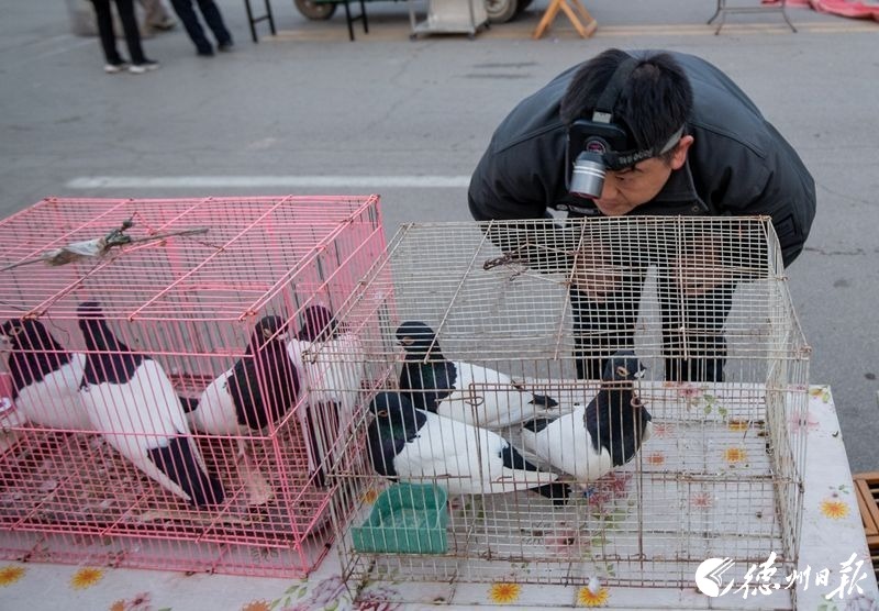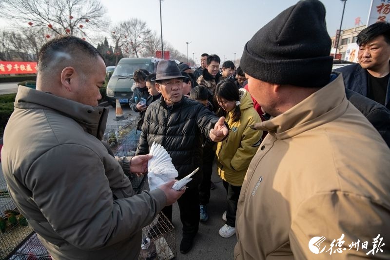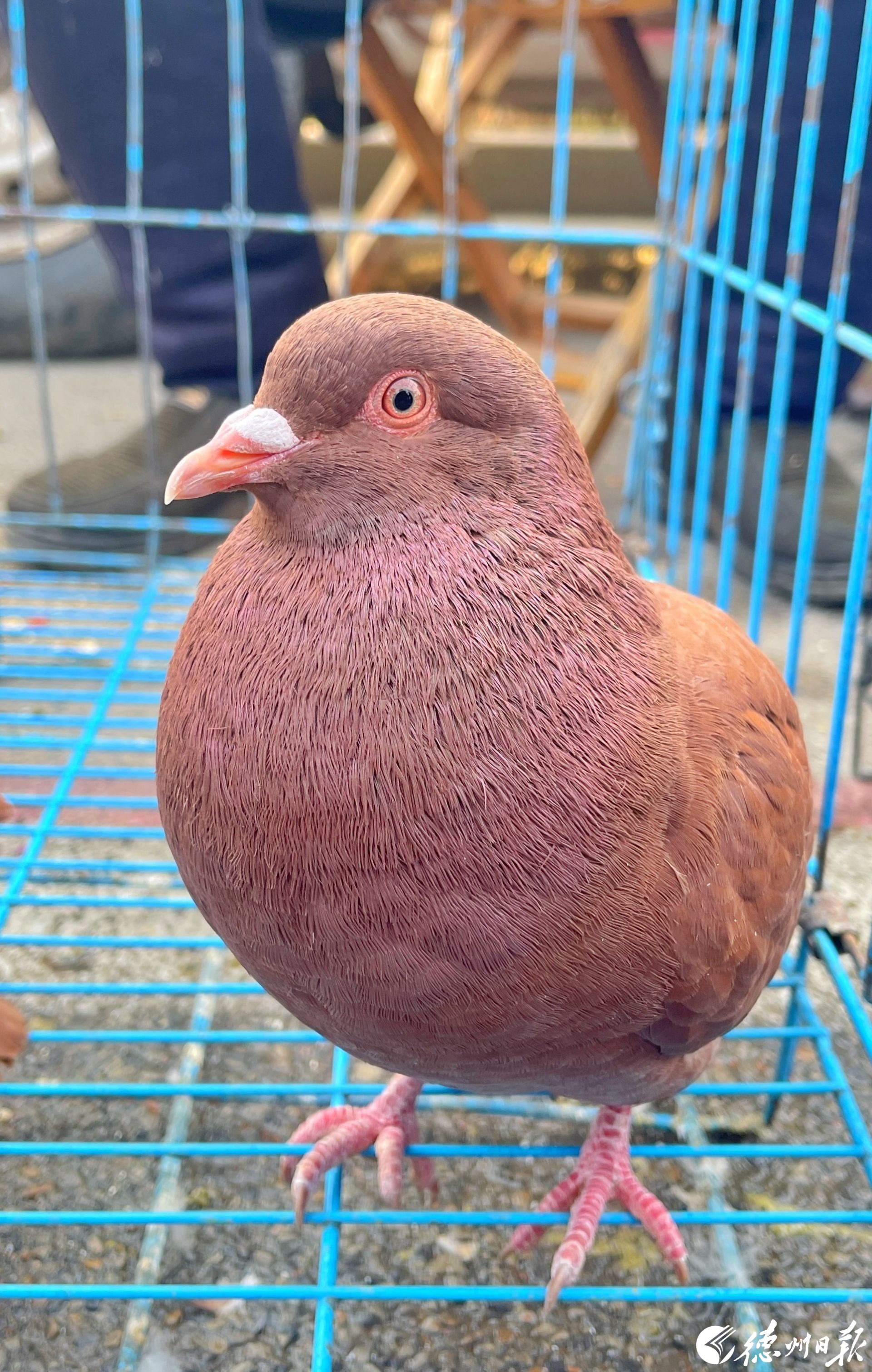 鸽子展销区是盛会的核心地带,也是鸽友们的“主战场”。一排排鸽笼整齐摆放,瓦灰、雨点、白羽等各色鸽子或昂首踱步,或振翅欲飞,圆溜溜的眼睛里透着灵气。“今年多带了几个品种的鸽子,国内的、国外的都有,希望借助这个平台和大家多多交流。”来自北京的客商魏一伟正与一位河北鸽友攀谈,他的摊位前围满了询价的顾客。“我赶恩城鸽子会快连续10年了,这里交通便利,市场规范,鸽友们都很实在。”魏一伟笑着说。