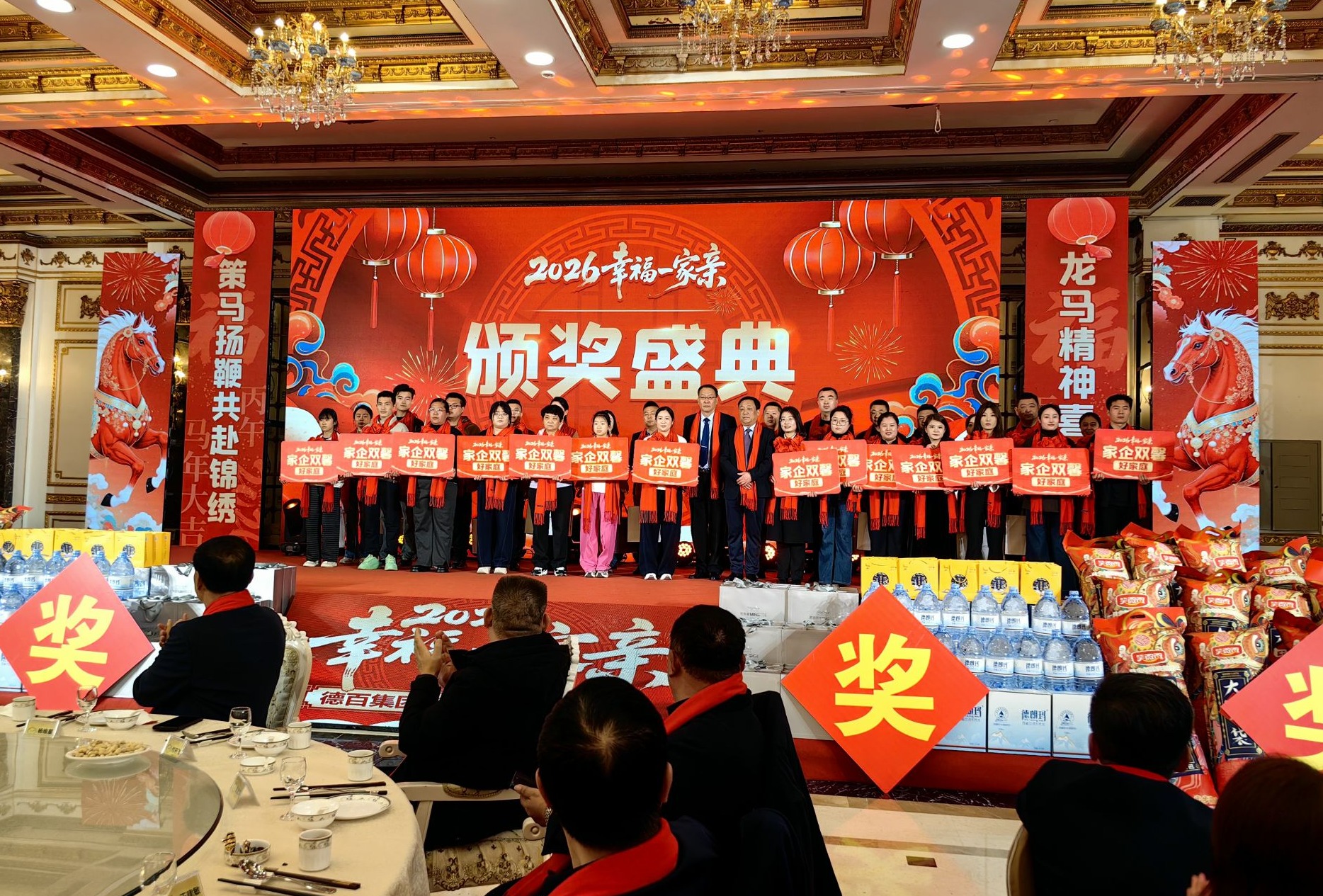 华灯璀璨映团圆,笑语盈盈满德百。2月25日,大年初九,德百集团2026年“幸福一家亲”员工亲属招待宴会在澳德乐金色大厅举行。德百集团领导班子成员、各单位负责人与1000余名优秀员工及家属欢聚一堂,共叙情谊、共话发展,在温馨喜庆的氛围中书写家企同心的暖心篇章。
