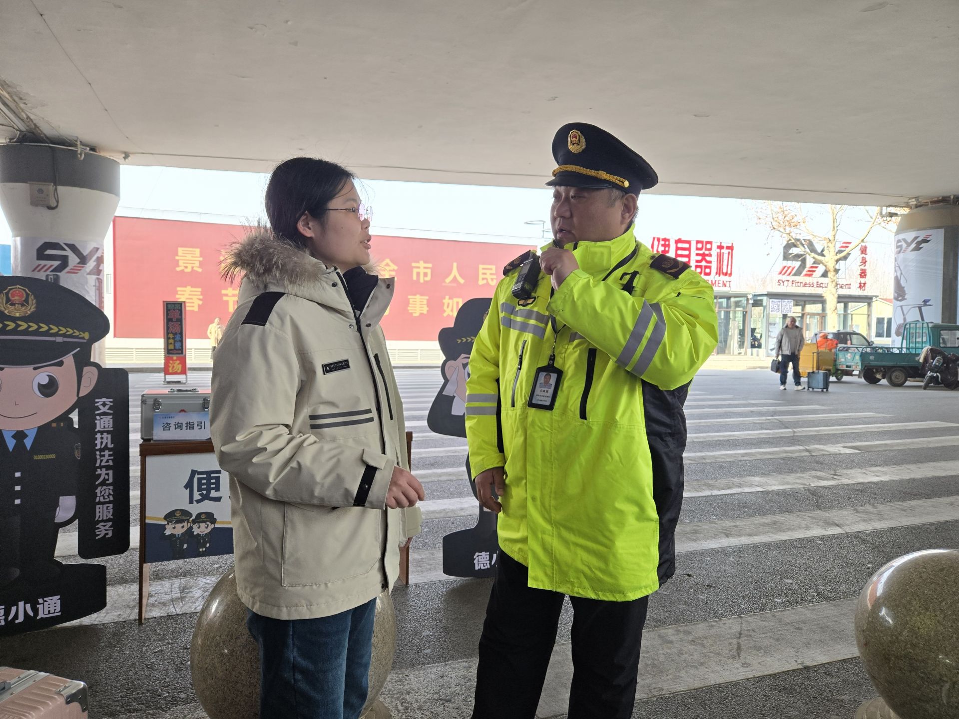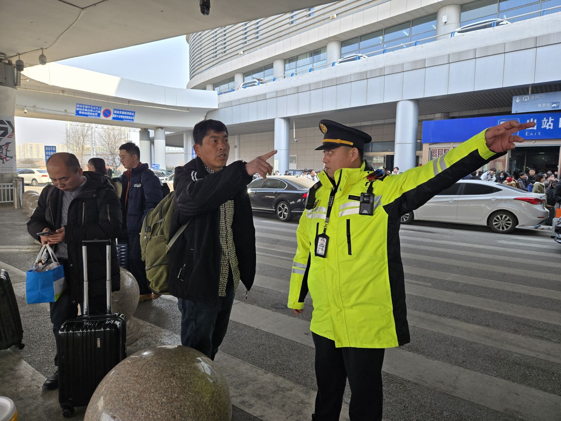 “你好,在哪里乘坐公交车,去汽车站坐几路?”“沿着路往南走大约200米就是公交换乘站,107路或者106路都能到。”于光超刚回答了一名旅客的问题,又有人前来询问。“这条路可以停车吗,能停几分钟?”“这附近有即停即走抓拍,最多3分钟,如果等候时间长建议先去停车场,到站后再来接。”他耐心回答。像这样的咨询,高峰期他们每小时要回应几十次。