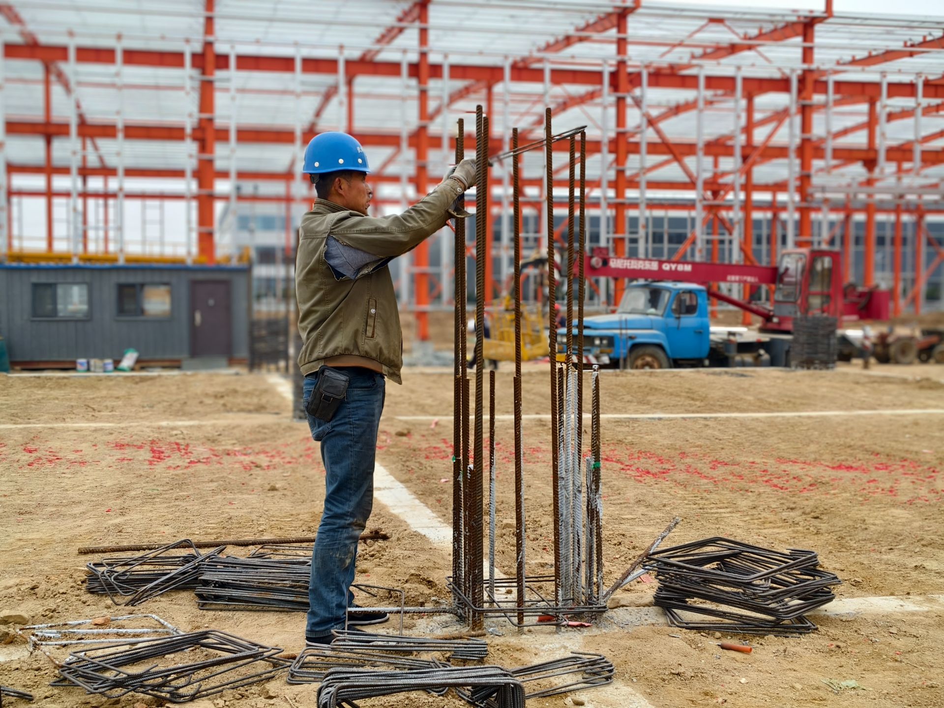 2月25日,在位于武城县四女寺镇的山东德天下通风设备有限公司组合式空调机组项目建设现场,工人正在进行钢结构架设施工,一派繁忙景象。