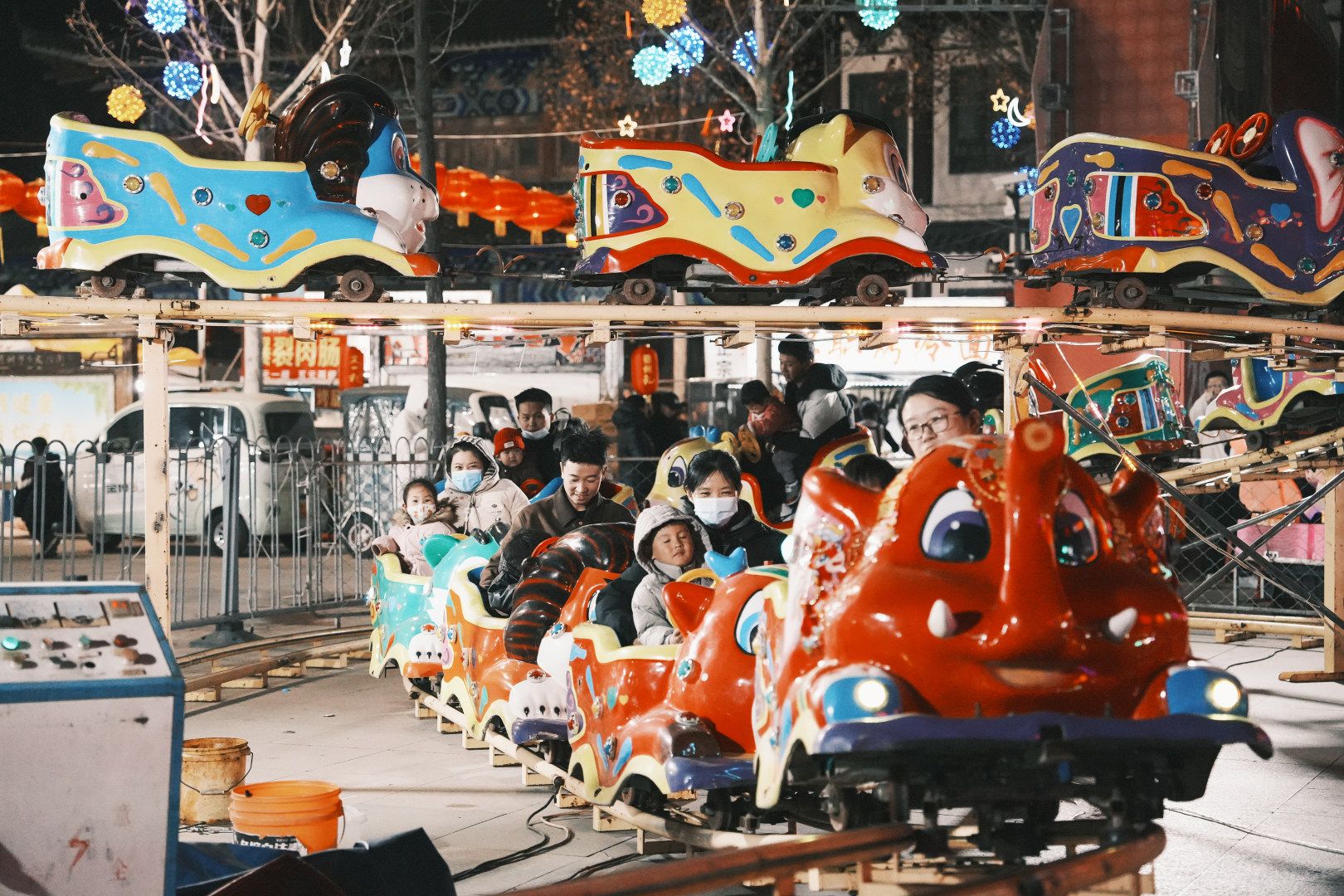 广场上,碰碰车、小火车、彩虹滑道等游乐设施前欢声笑语不断。孩子们尽情嬉戏,清脆的笑声与欢呼声此起彼伏,平日里静谧的广场化作一片欢乐的海洋。