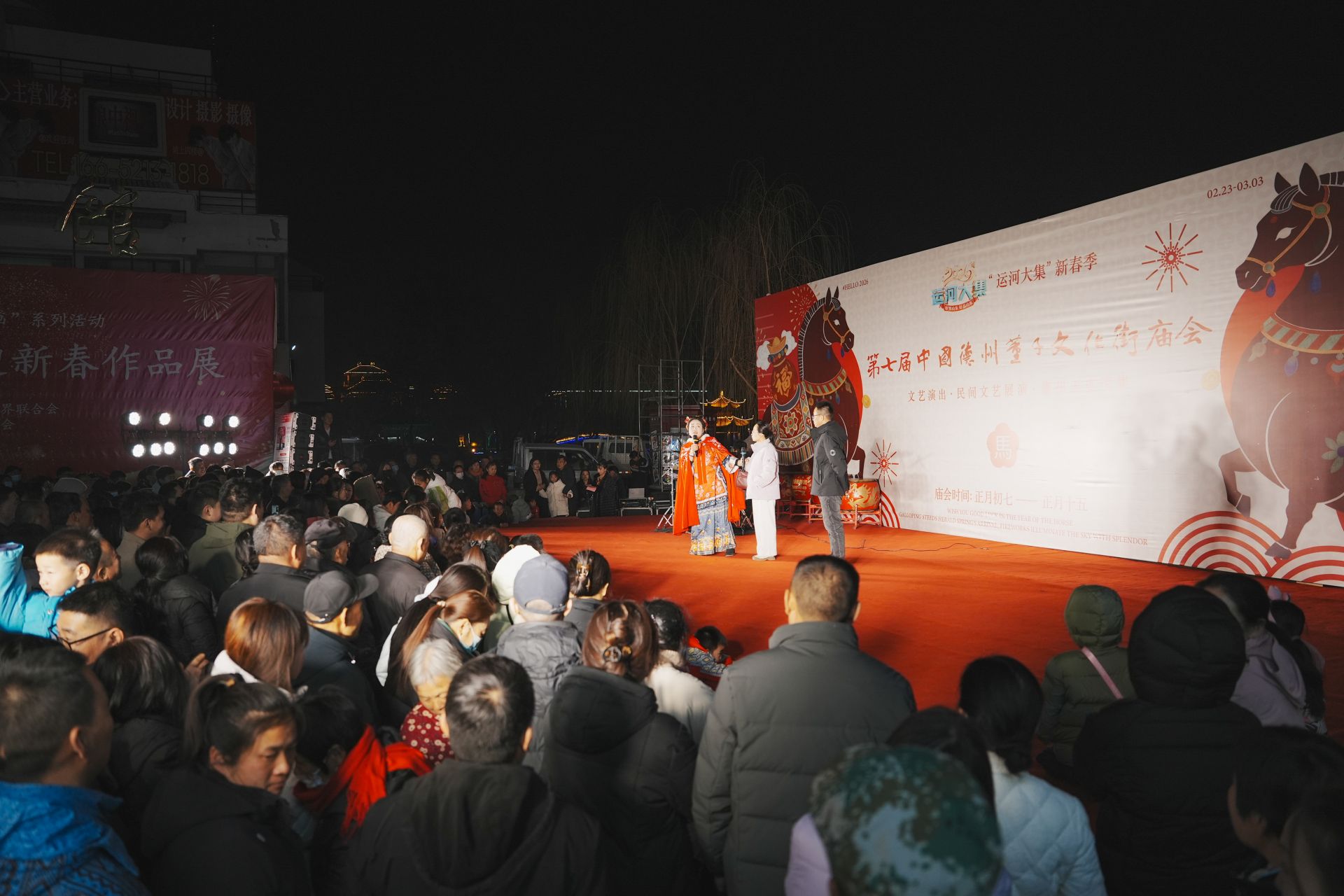 2月27日晚7点,德州董子文化街繁露广场锣鼓喧天、人声鼎沸。升腾的烟火气与喜庆的节日氛围交织在一起,市民游客纷至沓来,共赴一场“文化味”与“烟火气”兼具的夜间盛宴。