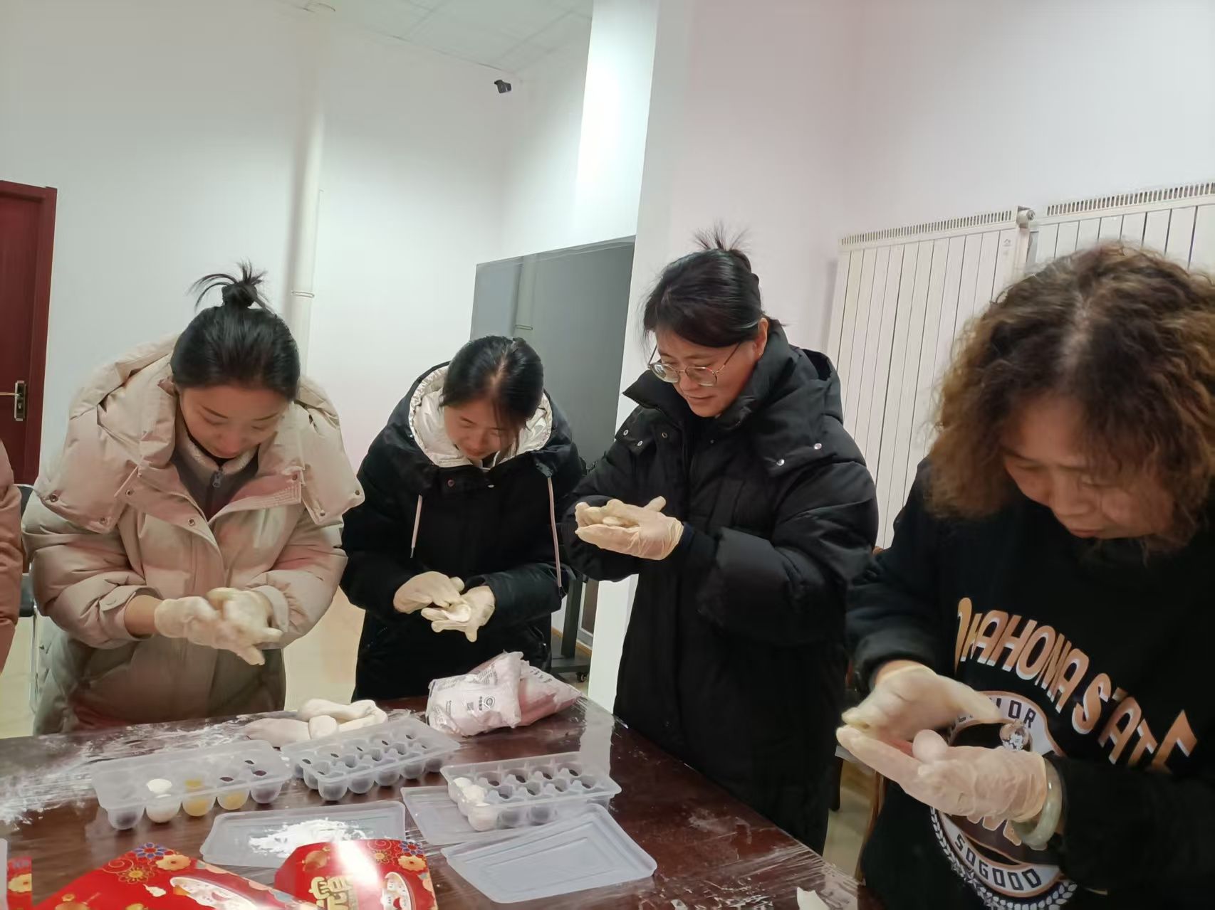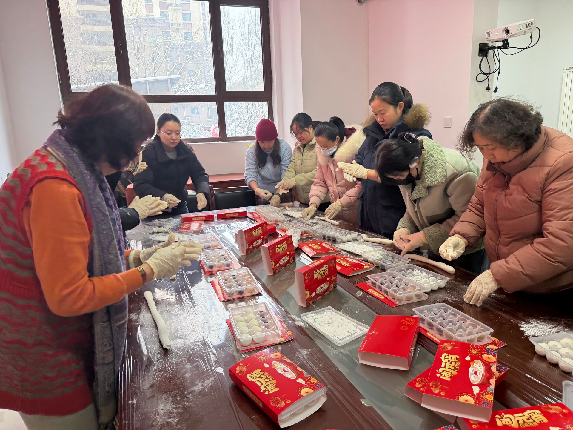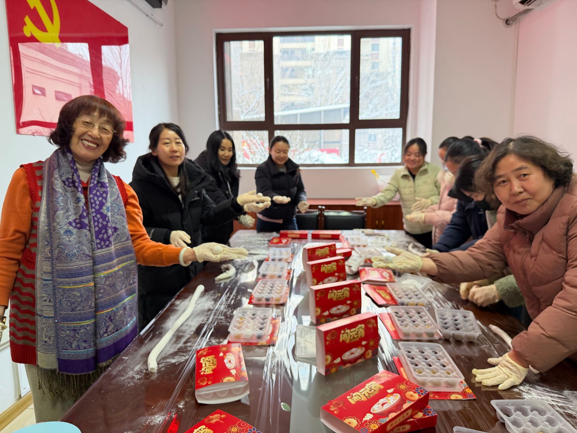 活动现场暖意融融,处处洋溢着喜庆祥和的氛围。社区工作人员早已提前准备好了糯米粉、黑芝麻、豆沙、五仁等丰富的馅料,以及各类工具。“左手托着面皮,右手放馅料,轻轻捏紧边缘,搓圆就好啦!”活动一开始,有着丰富包汤圆经验的居民就主动当起“老师”,手把手教大家包汤圆。揉、捏、搓、按,一个个形态各异的汤圆在大家的手中诞生,有的圆润饱满,有的小巧玲珑,每一个都承载着对美好生活的期许。