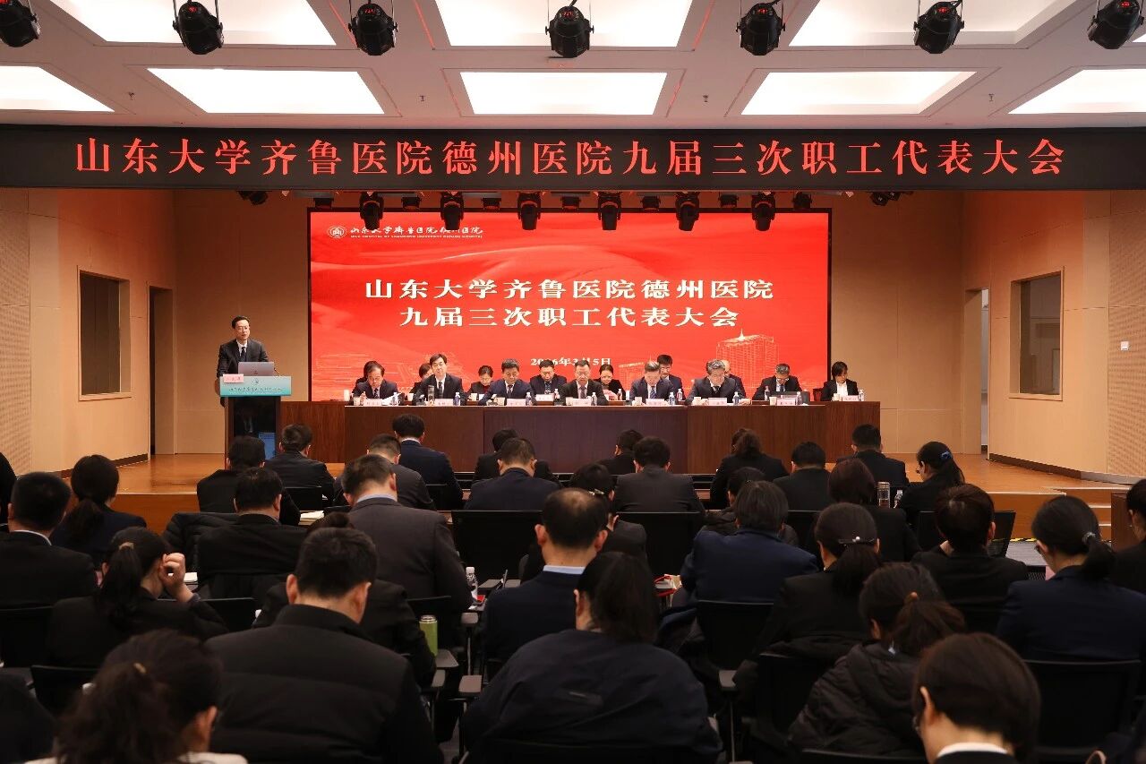会议在庄严的国歌声中拉开帷幕。韩辉代表山东大学齐鲁医院向齐鲁医院德州医院第九届三次职代会、三次工代会的召开表示祝贺,向关心支持医院发展的各级领导致谢,向辛勤付出的全体干部职工致以崇高敬意。他指出,四年来齐鲁医院与德州市委、市政府紧密协作、同向发力,持续优化“齐鲁—德医”合作模式,通过增派专家、下沉专职管理团队与学科骨干开展驻点帮扶,全方位助推德州医院医教研管核心竞争力提档升级。在双方携手努力下,德州医院实现跨越式发展,2025年获评全省国家区域医疗中心综合评比第1名,发展经验获省级领导肯定性批示。韩辉强调,2026年是“十五五”规划开局之年,更是医院深化合作共建、攻坚国家区域医疗中心的关键之年。他提出三点要求:一要进一步强化党建引领,凝聚发展向心力,以党建统领学科、人才、医疗、行风等各项工作提质增效;二要进一步强化目标导向,释放区域中心吸引力,紧扣“十大中心”建设目标任务,全力打造鲁冀省界医疗新高地;三要进一步强化发展支撑,培育内生发展源动力,齐鲁医院将持续加大要素投入,创新团队式帮扶模式,深化技术人才双向输出。未来在双方深化融合发展的同时,德州医院加快与齐鲁医院同质化进程,共同筑牢高质量发展根基,为建设国家区域医疗中心、守护鲁冀区域群众健康贡献更大力量。