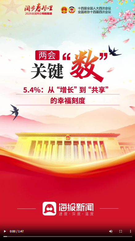 阔步春风里,策马奋进时。今年是“十五五”开局之年,全国两会在北京开幕。关键的节点,关键的盛会,意义重大。在2026年的政府工作报告中,有一批关键数据格外亮眼。3月6日起,大众网•海报新闻推出“两会关键‘数’”系列报道,通过数字人播报,解码数字背后的成就与信心,与您一同开启崭新征程。