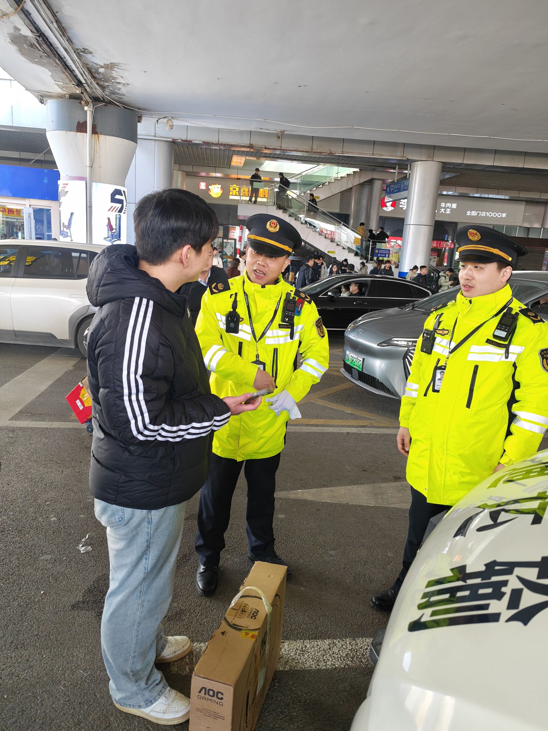 “同学,我帮你拎一个。”“公交车在广场左侧……”执法队员一边引导人流分流,一边细致讲解乘车路线。对于刚下车的新生而言,这些身穿制服的“引路人”成了他们抵达德州后的第一份温暖。