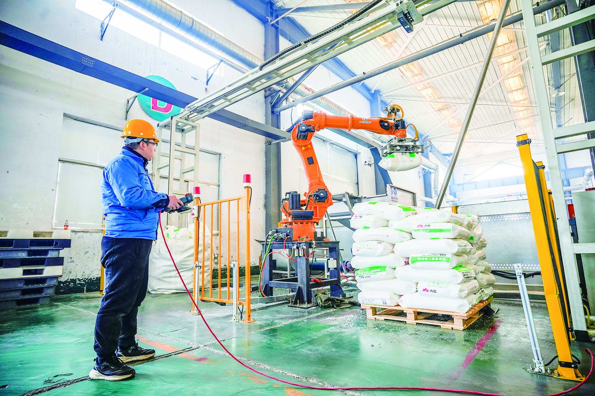 浩阳环境股份有限公司生产车间里,机械臂高效完成上料