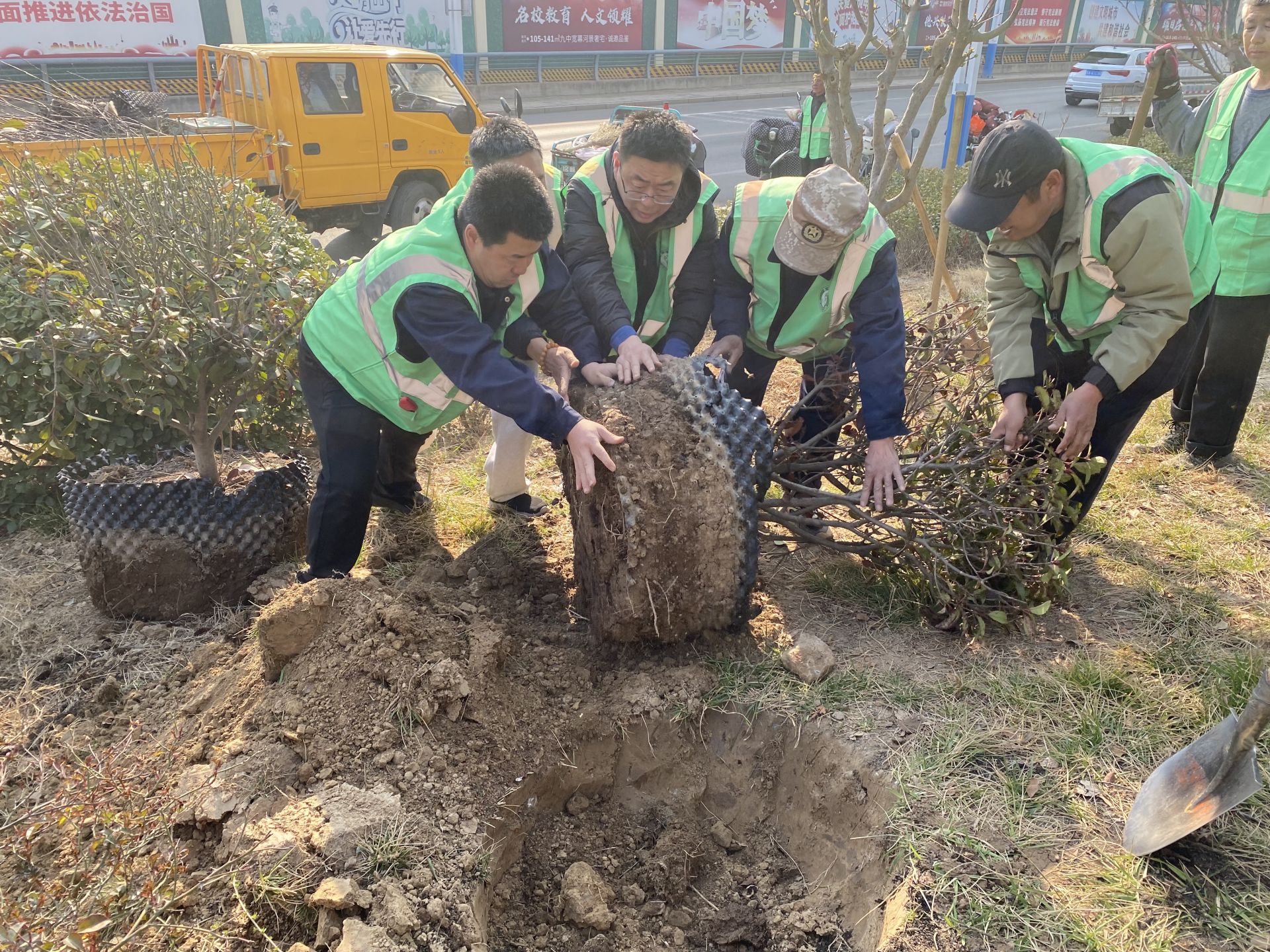 此外,中心四个养护管理大队分别在各自辖区同步开展植树活动,共种植白蜡、木槿、海棠、密枝连翘、红叶石楠球1200余株。