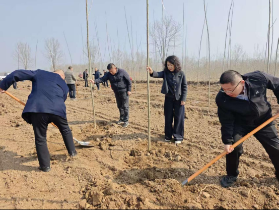 植树现场,公司员工精神饱满、热情高涨,大家分工协作、默契配合,挥锹挖坑、扶苗培土,每一个环节都认真细致、井然有序。在春日的暖阳下,大家用汗水浇灌希望,用行动守护绿色,充分展现了保险从业者朝气蓬勃、团结协作、积极向上的精神风貌和金融为民的国寿担当。