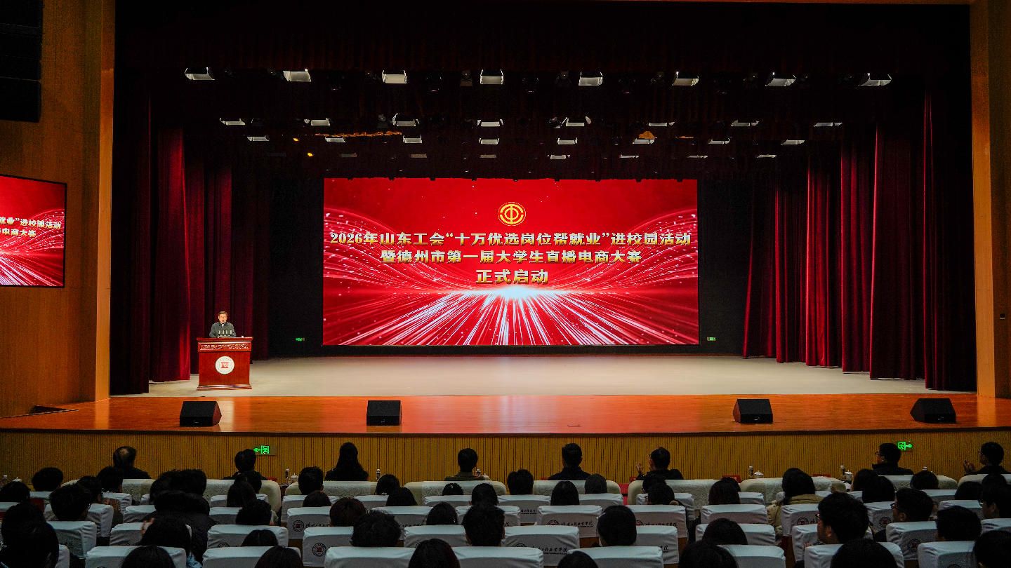 3月17日,2026年山东工会“十万优选岗位帮就业”进校园活动暨德州市第一届大学生直播电商大赛启动仪式在德州工程职业学院举行。省总工会党组成员、副主席卯金涛出席并讲话,德州市政协副主席、市总工会主席才玉璞出席。