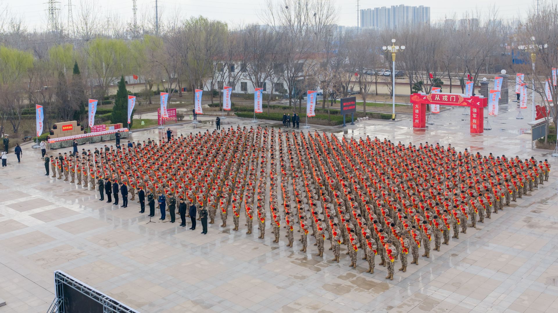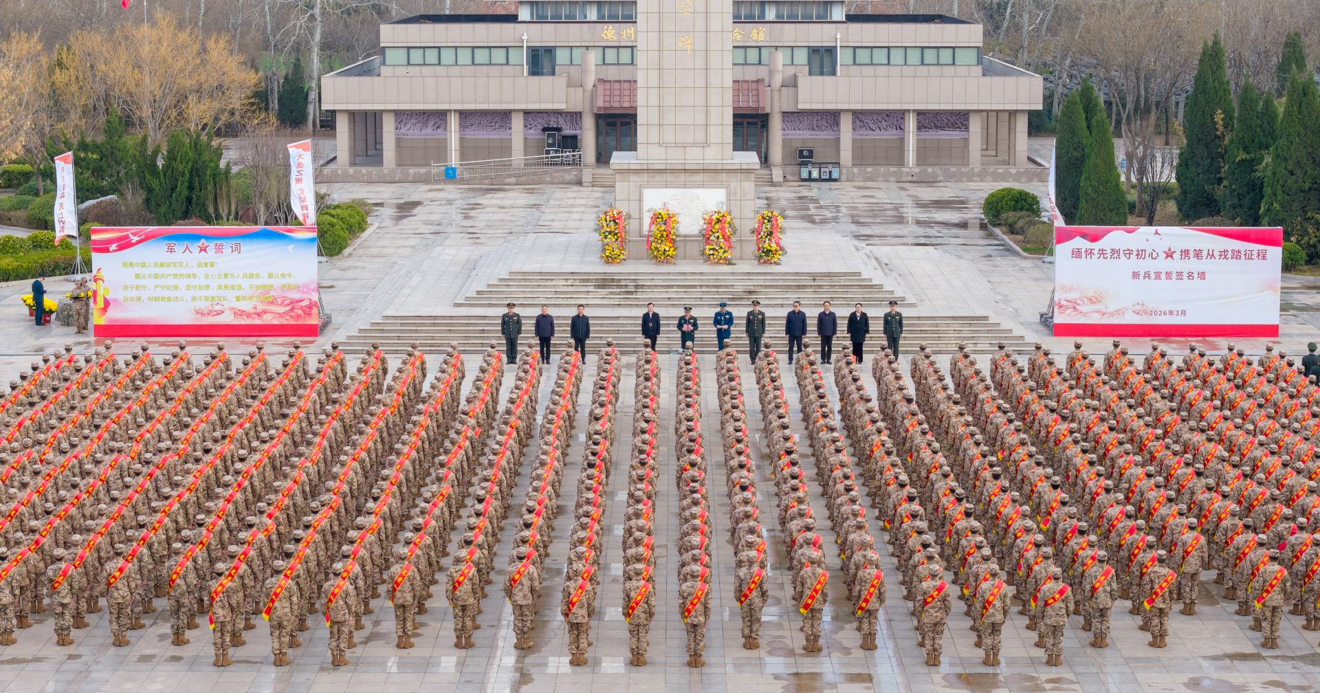 3月18日,2026年德州新兵缅怀祭扫先烈暨出征仪式举行。市委常委、德州军分区司令员何昌东,德州军分区政委郝爱军,副市长滕世雷出席。