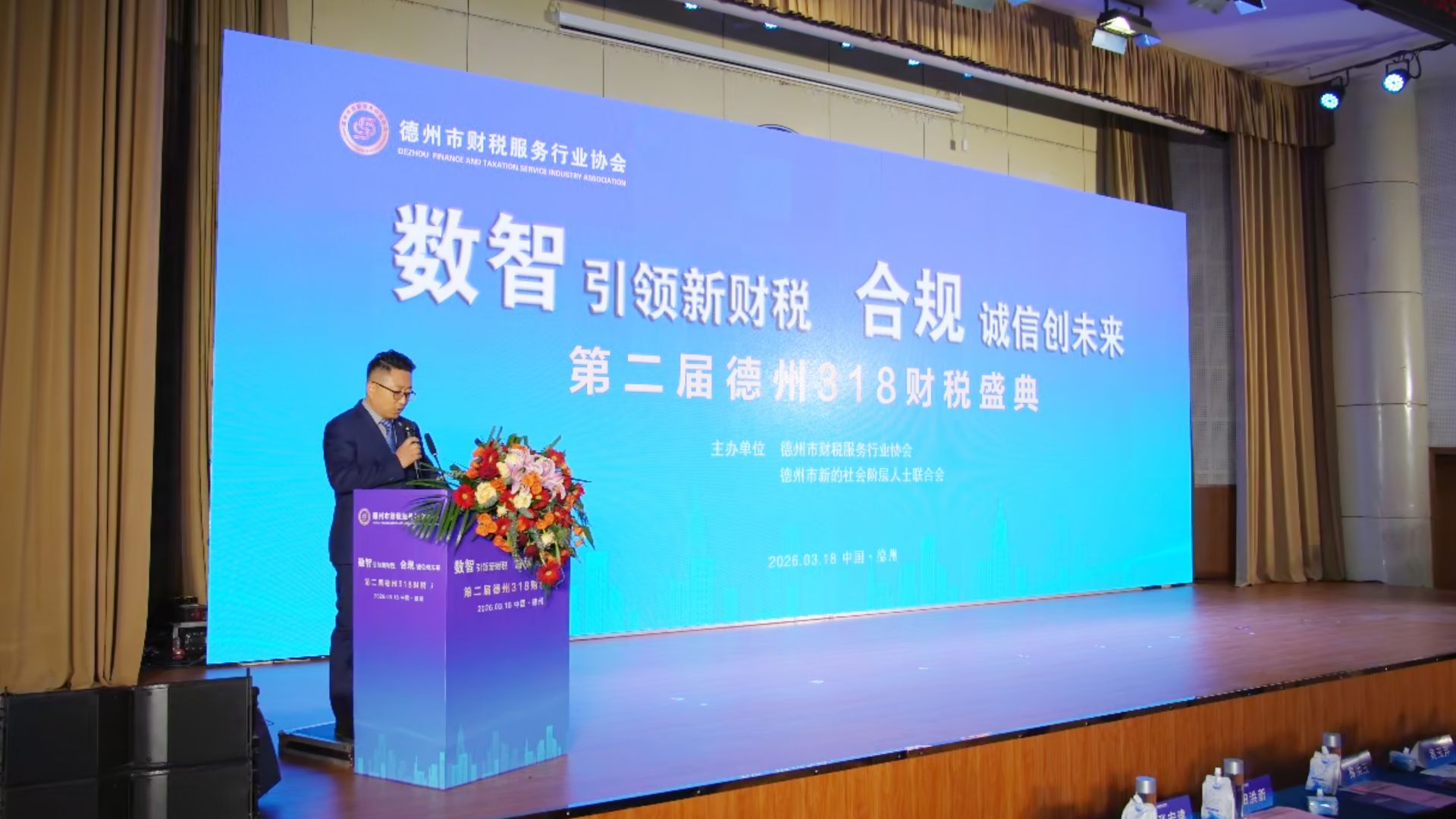 3月18日,以“数智引领新财税・合规诚信创未来”为主题的第二届德州318财税盛典在德州职业技术学院学术报告厅启幕。本次盛典由德州市财税服务行业协会、德州市新的社会阶层人士联合会联合主办,旨在顺应全国税改纵深推进、人工智能技术加速迭代、财税合规监管持续强化的时代背景,搭建集政策解读、技术应用、行业协同、校企合作于一体的高质量交流平台。