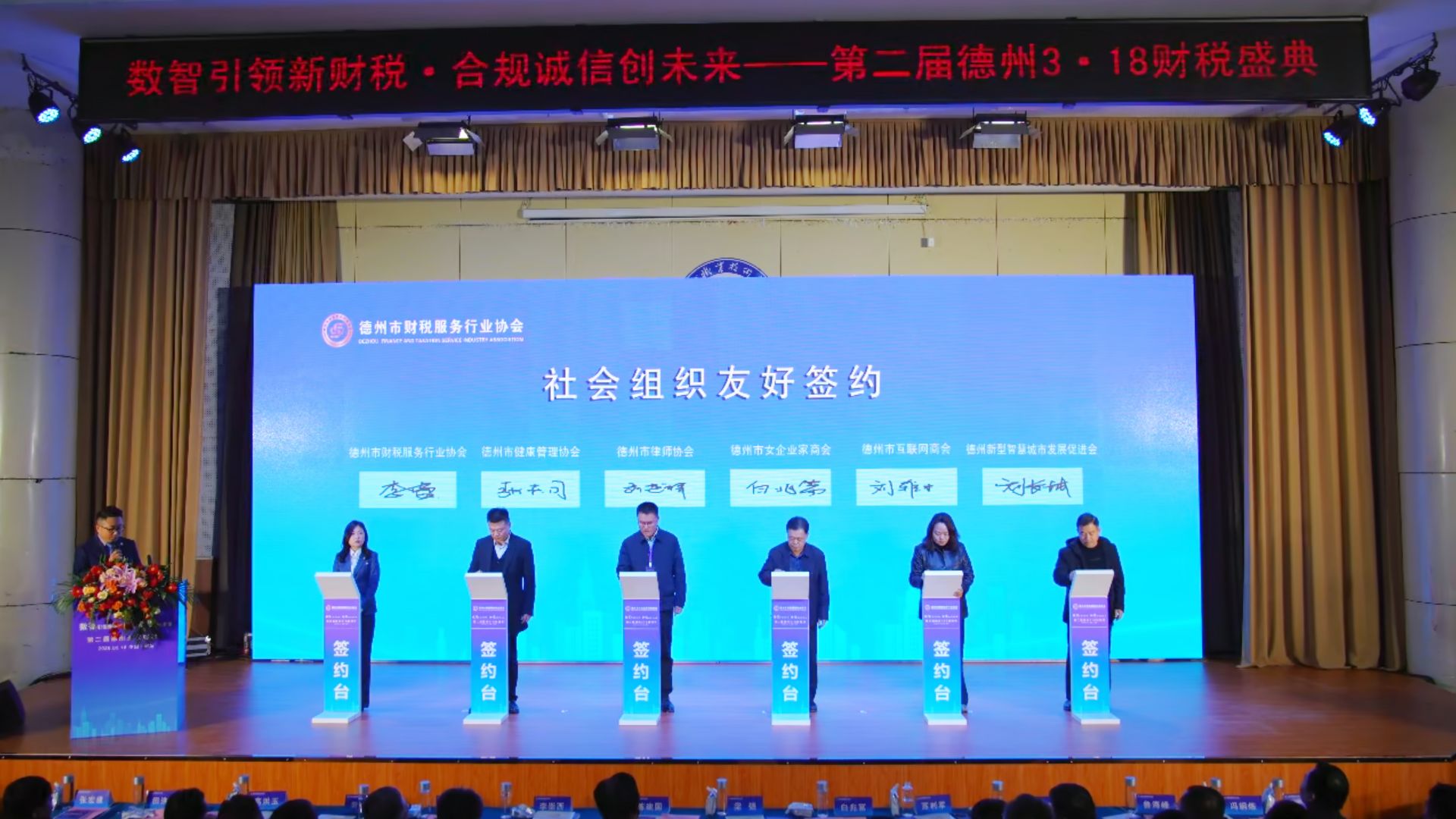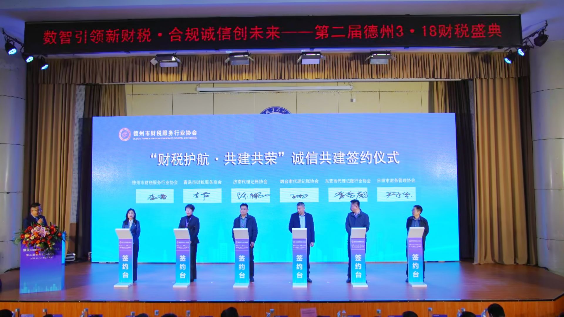 活动现场,来自青岛、济南、烟台、东营、日照等地的财税行业友好商协会与德州市财税服务行业协会共同签署“财税护航・共建共荣”诚信共建协议。各方面向社会作出公开承诺,将以诚信为基石、以合规为准绳,强化行业自律、厚植诚信文化,致力构建资源共享、协同共进、规范有序的财税服务新生态。