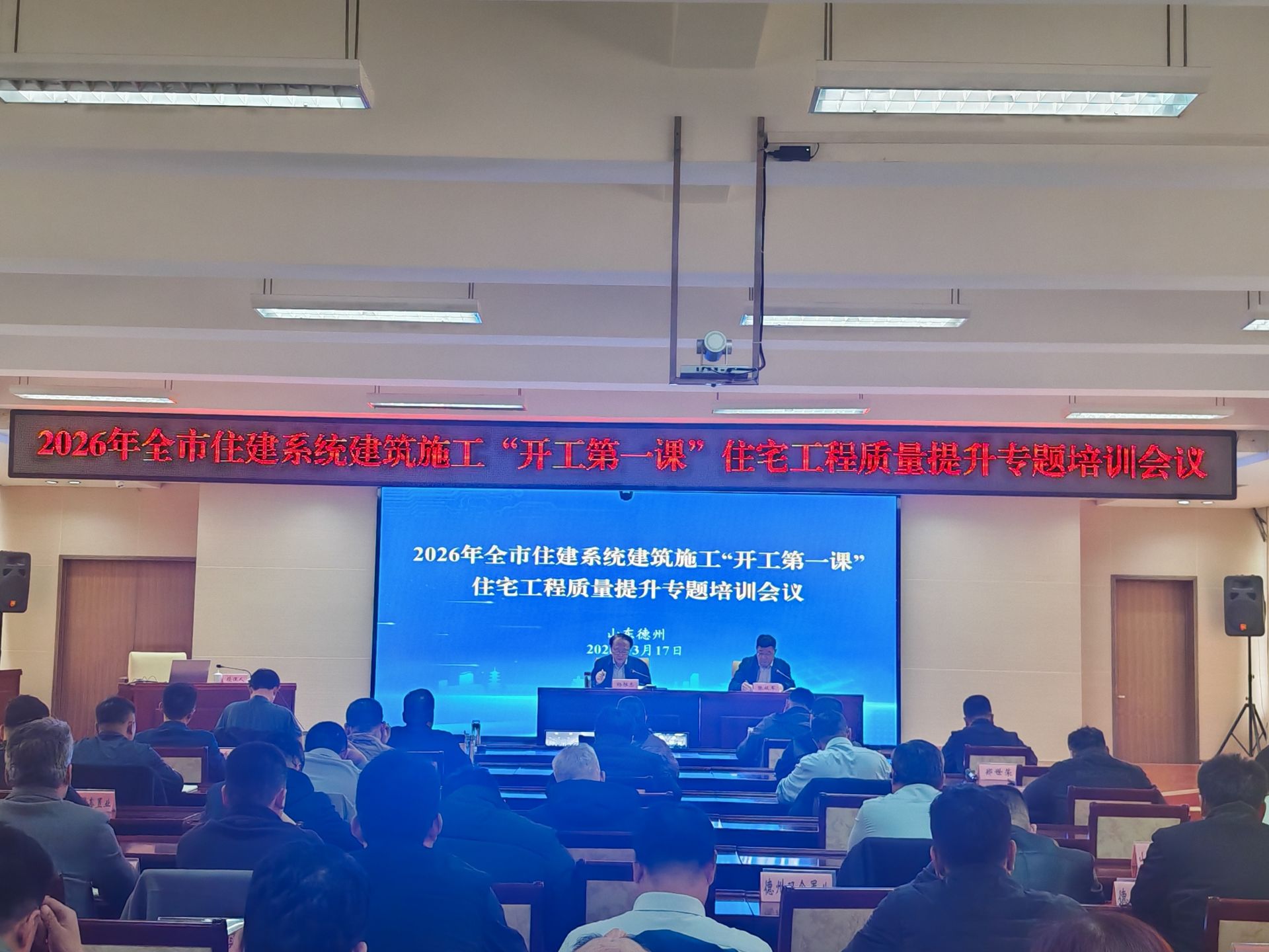 3月17日,德州市住房和城乡建设局举办全市2026年住宅工程质量提升专题培训会议。德州市住房和城乡建设局党组成员、三级调研员杨胜志讲话,德州市建筑业发展促进中心主任张双军主持。