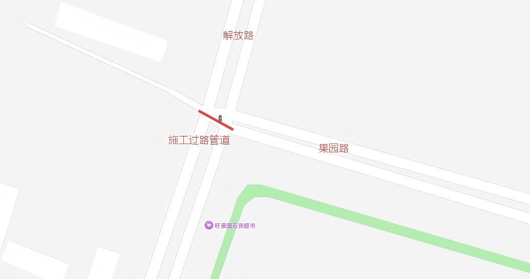 1.施工路段:果园路与解放路交叉口;2.施工时间:2026年3月25日至2026年4月8日;3.施工单位:山东高速德建集团有限公司一建建设分公司;4.注意事项:封道施工期前,请停在施工范围之内车辆尽快驶离,不要停放在此路段。望广大群众积极配合,提前做好出行计划。施工给您带来不便,敬请谅解。