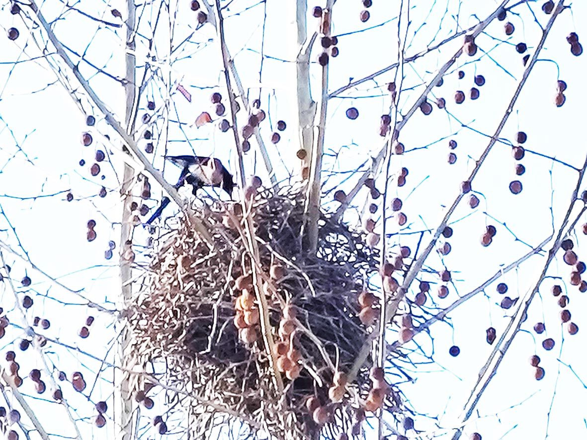 要说2026年第一件高兴的事,当属我家窗外的梧桐树上,迎来了一对筑巢的喜鹊。