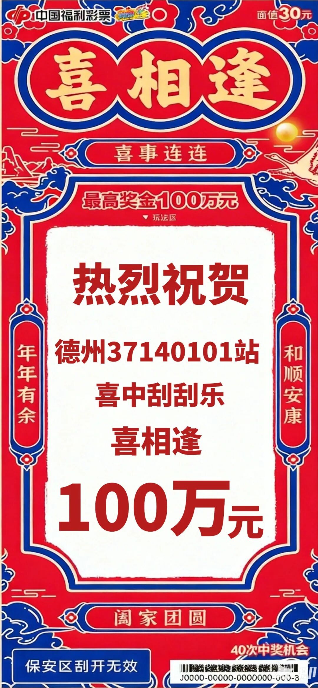 德州彩友近日运气爆棚,在刮刮乐“喜相逢”玩法中一举刮出100万元头奖!这张面值30元的彩票不仅带来了“喜相逢,好运来”的惊喜瞬间,更完美诠释了“小彩票,大公益”的暖心内涵。每一次指尖轻刮,既是邂逅幸运的期待,也是奉献爱心的温暖传递。愿这份从天而降的鸿运,为生活添喜,为公益添彩,让幸运与善意在每一次“喜相逢”中美好相遇!