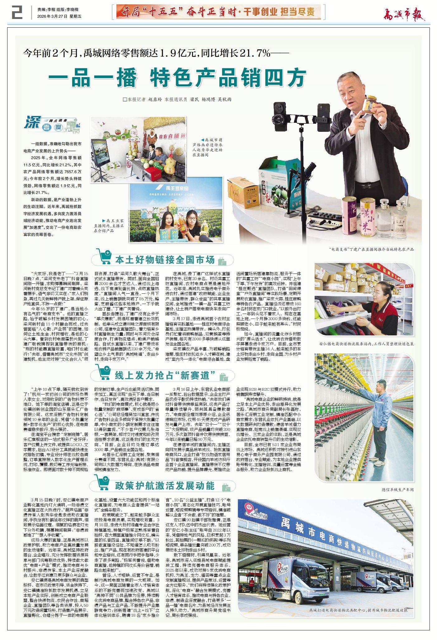 ▶网络零售额达1.9亿元 ! 禹城:一品一播 特色产品销四方。(查看详情)