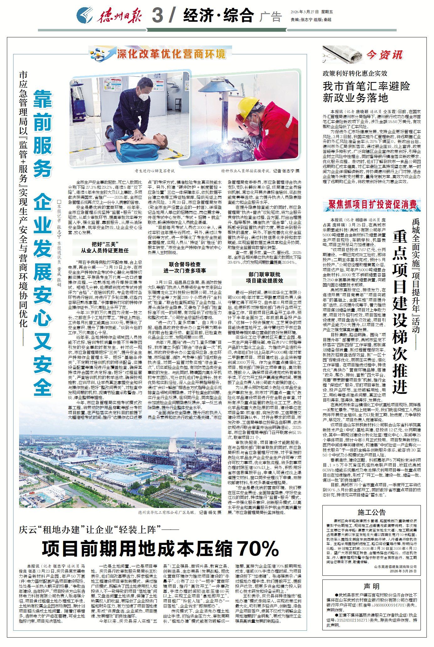 最近一段时间,德州实华化工有限公司5000吨/年对苯二甲酰氯项目负责人侯守慧忙得不可开交,自去年8月项目立项后,他便积极对接相关部门进行各项开工准备工作。“目前项目已具备开工条件,预计下半年全面竣工,年底前具备投产条件。”这样一个投资强度大、工艺复杂的项目能快速落地开工,侯守慧归功于市应急管理局等相关单位营造的良好发展环境。