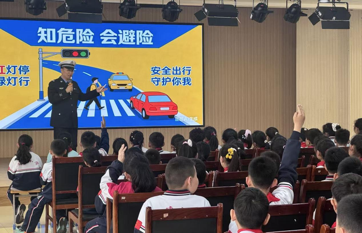活动中,民警结合校园周边道路交通实际情况,通过图文并茂的形式,详细讲解了各类交通标识的含义和识别方法,帮助同学们认识红绿灯、斑马线、禁止通行等常见标志,增强了同学们对交通规则的理解。