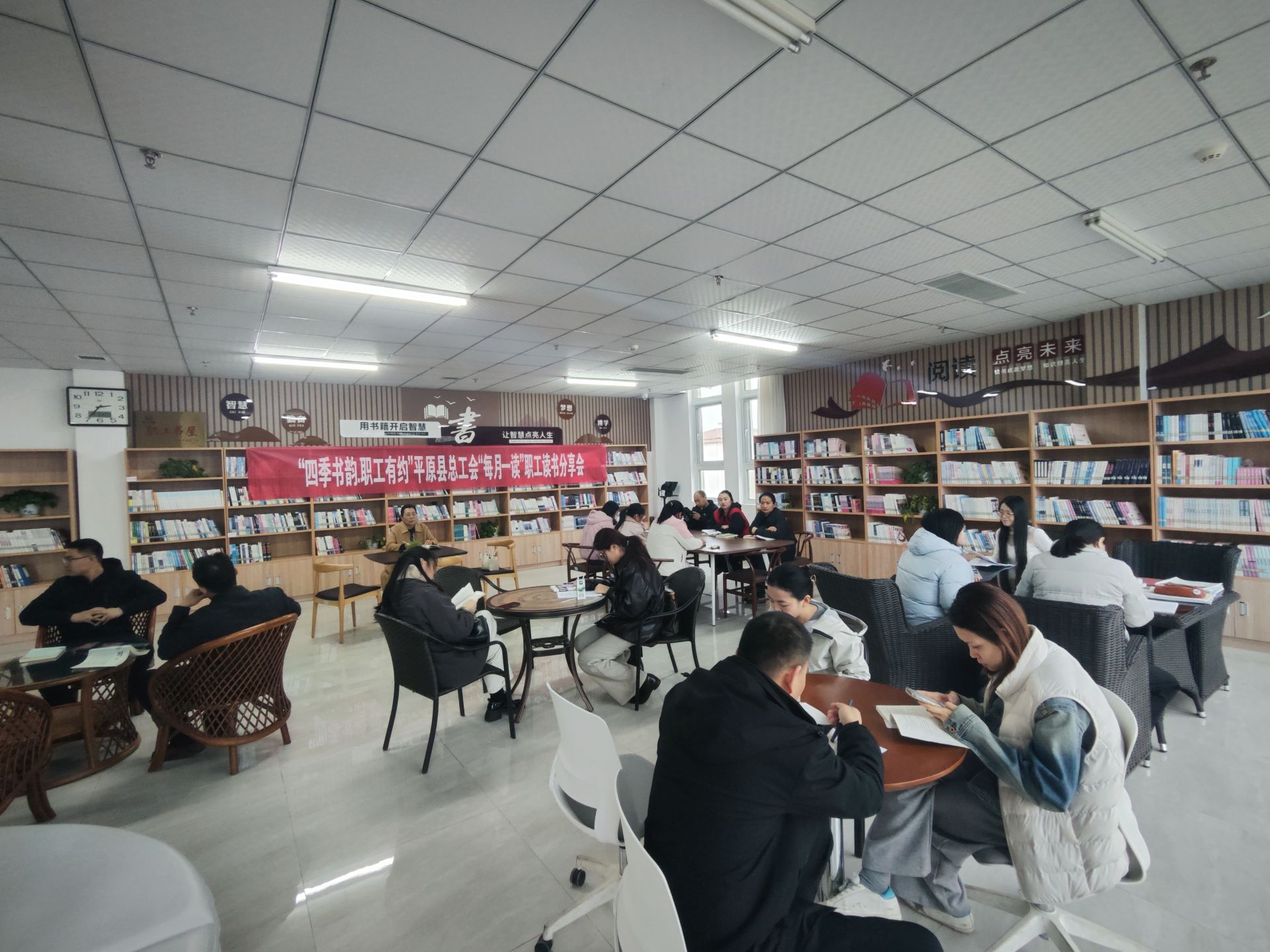 3月31日,平原县工人文化宫的职工书屋内书香氤氲、气氛热烈,一场由县总工会主办的“每月一读”职工读书分享会在此举办。20余名来自不同岗位的职工齐聚一堂,在阅读中放松身心,在分享中碰撞思想。