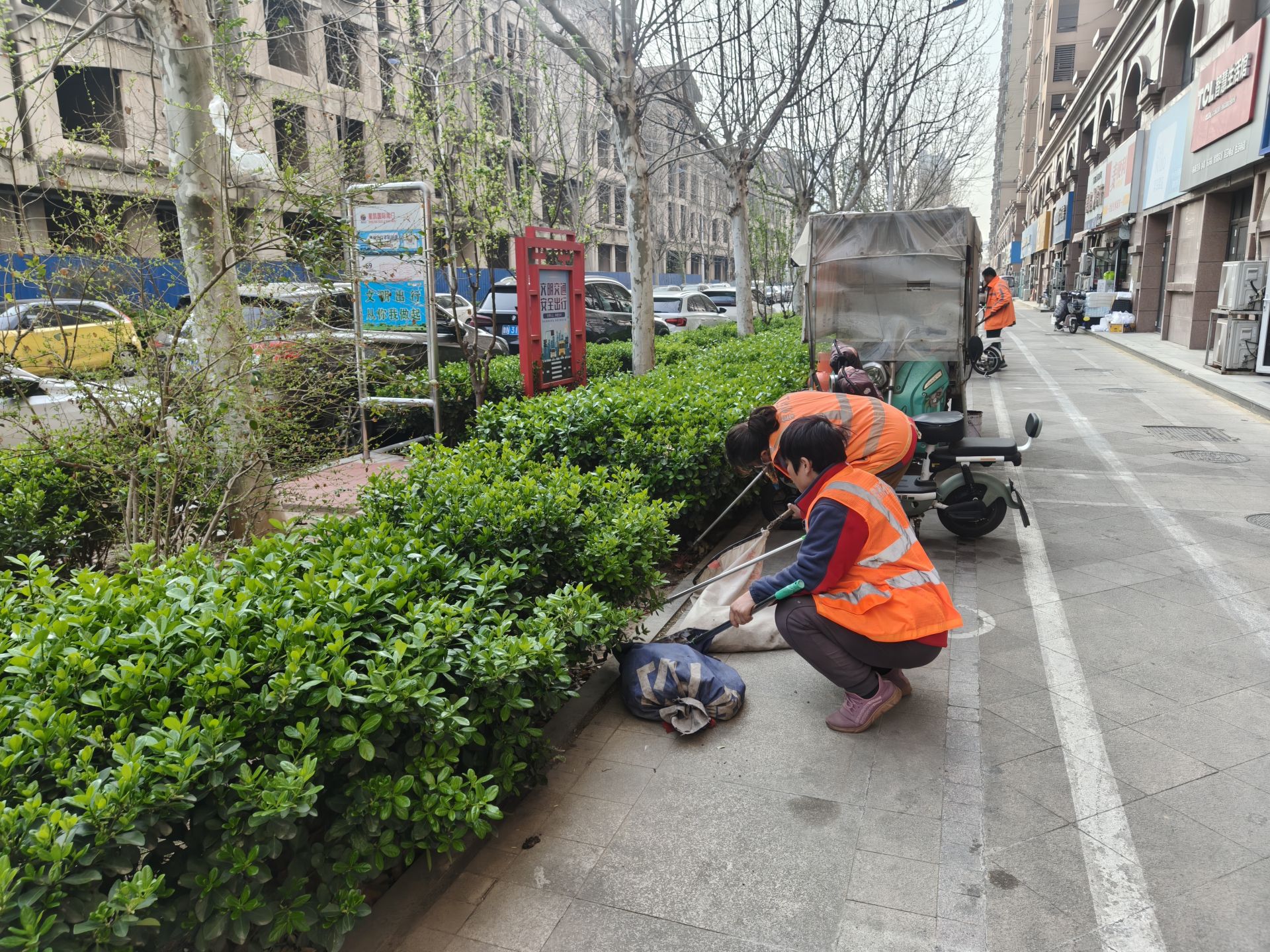 深耕精细保洁,实现全域洁净。道路保洁是街巷整治的基础,中心坚持全域覆盖、长效管控理念,对辖区背街小巷开展拉网式排查,重点清理巷道拐角、绿化带缝隙、墙根死角等隐蔽区域,建立问题台账、实行销号管理,严格落实“横到边、竖到沿、不留死角”作业标准,确保环境卫生问题即查即改、快速清零。优化保洁模式,推行“集中普扫+不间断巡回捡拾”双轨机制,深化人机协同作业,构建机械提效、人工补细的滚动保洁体系,重点街巷加密捡拾频次、垃圾随产随清。一季度累计清理卫生死角200余处,清理各类零散垃圾40余方,有效解决了街巷垃圾杂物积存等问题,实现街巷环境洁净提质。