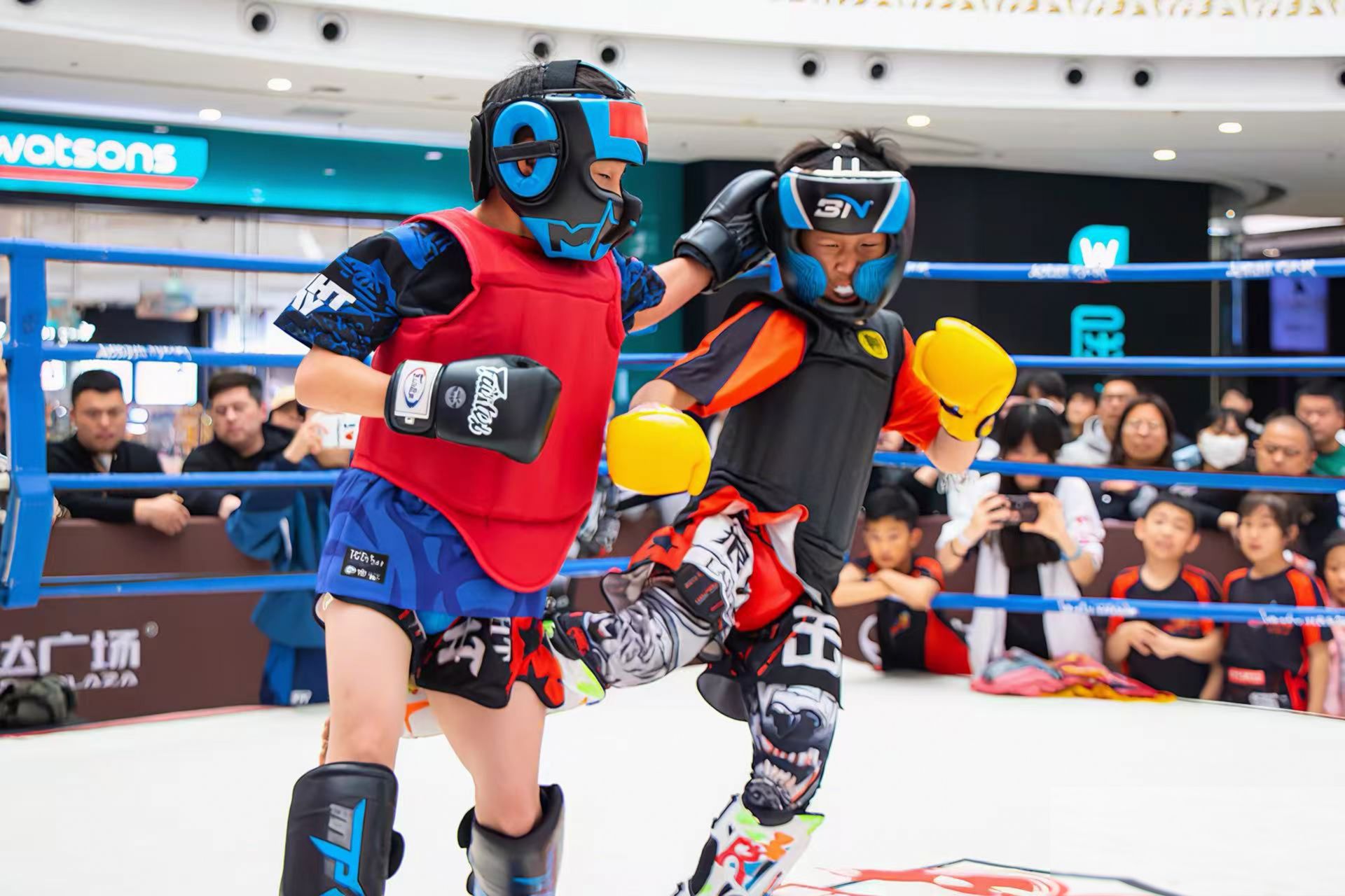 随着裁判一声令下,比赛正式开始。小拳手们激烈交锋,直拳、摆拳、鞭腿、抱摔等动作如行云流水,攻防之间尽显少年锐气。不同年龄段的小选手虽然身形稚嫩,却展现出远超年龄的专业与坚韧,有的在比分落后时咬牙坚持,有的在优势局中稳扎稳打,充分诠释了散打运动的拼搏精神。