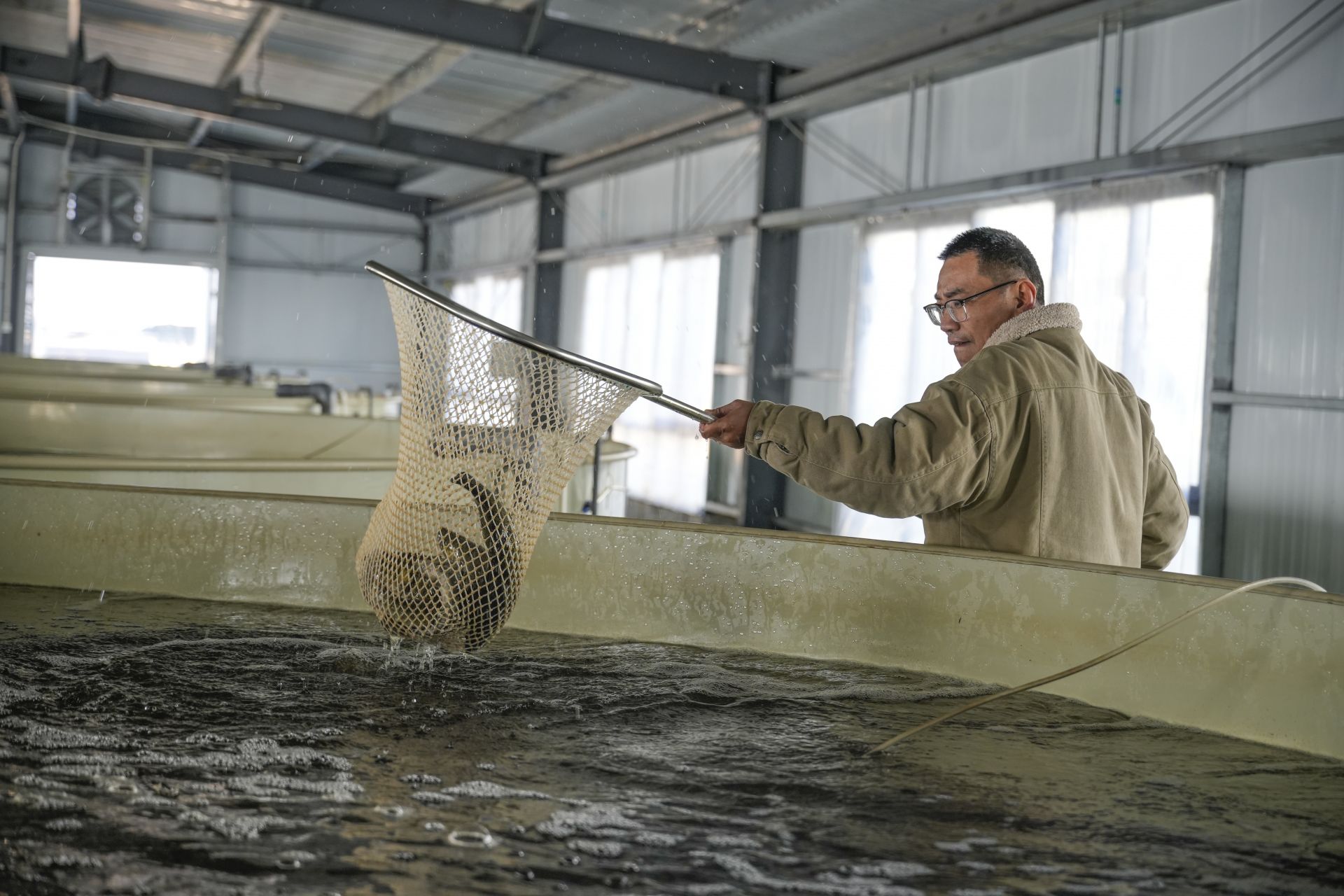 “水温20.5℃、pH值7.72……”3月26日,在渔库(山东)农业产业发展有限公司渔光旅项目循环水养殖车间智慧大屏上,温度、pH值、湿度等数据正实时更新,工作人员熟练地向养殖池中投放饲料、调节设备。据介绍,这种工厂化模式借助制氧、排污等现代化设施,精准调节养殖环境,破解以往养殖受天气、水质影响大,鱼苗成活率低的难题。