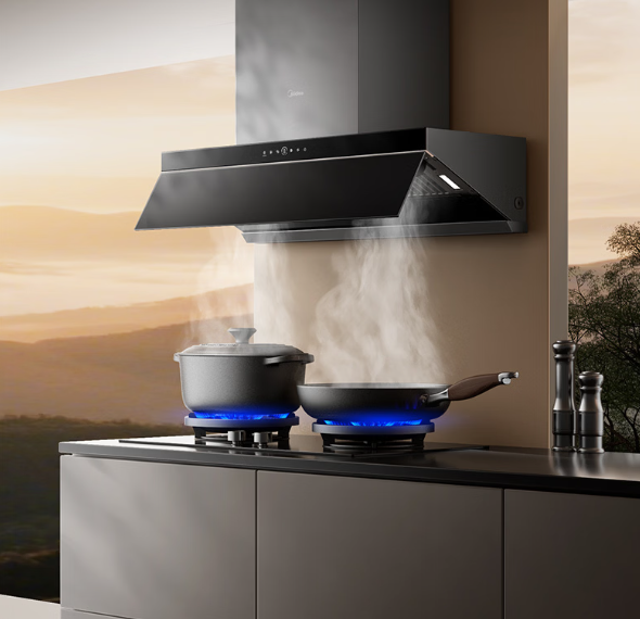 看场景:小厨房/开放式厨房选超薄平嵌、顶侧双吸机型(如美的 AK7 Pro),省空间+净烟强;经常爆炒选 25m³/min 以上风量 + 1000Pa 以上静压机型,排烟彻底。